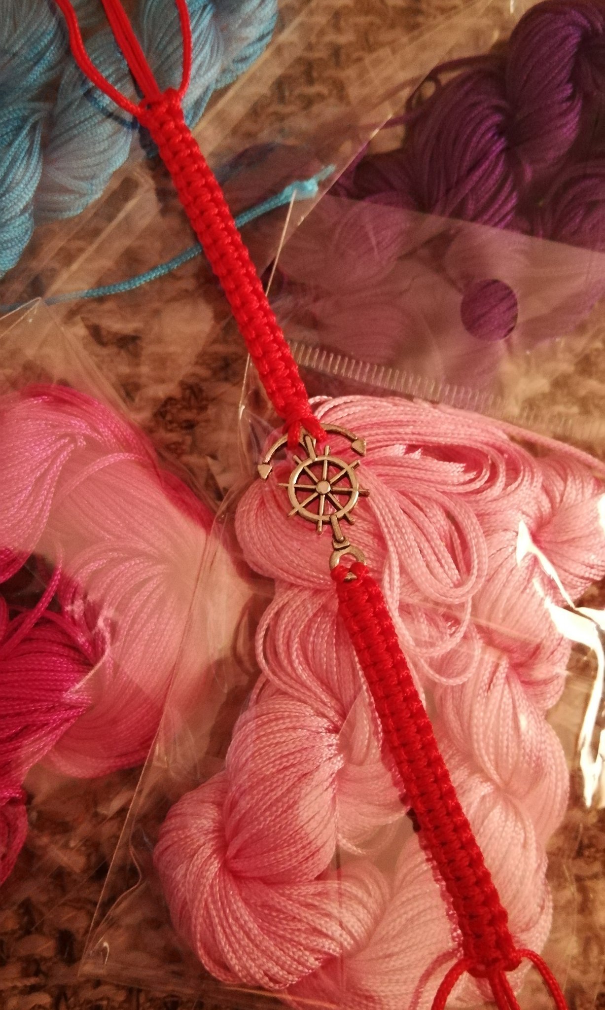 Обожавам всички творчески занимания и много ми се иска да имам повече свободно време за тях. Засега се занимавам единствено с плетене на гривнички, като това е последната която съм започнала и все още е недовършена.