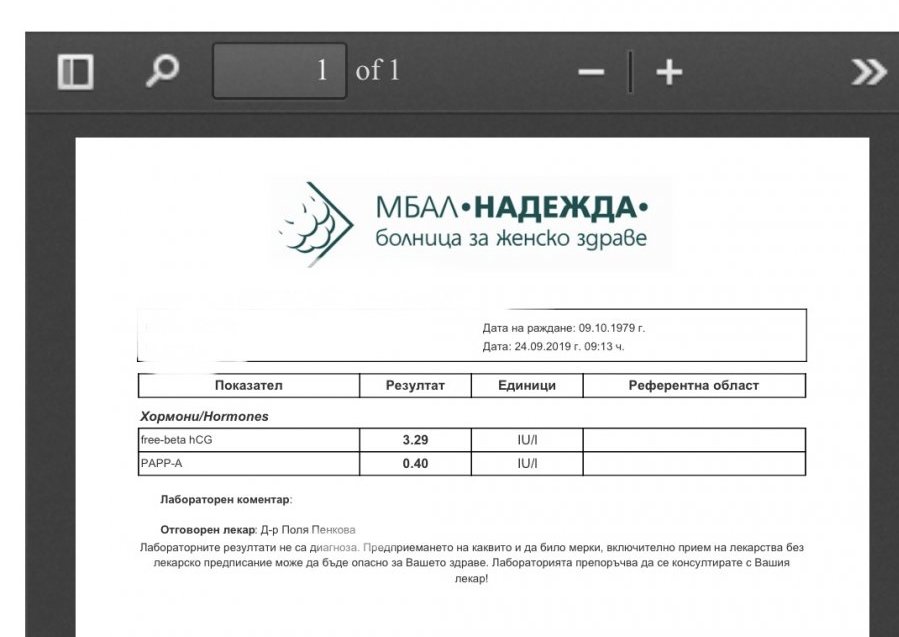 В Щерев изразиха притеснения,че не са около 1-ца. Ааз четох по форуми,че когато единия е над,а др.под 1 увеличава значително риска от Даун. Явно от Надежда няма да получа документ с изчислен общ риск😩