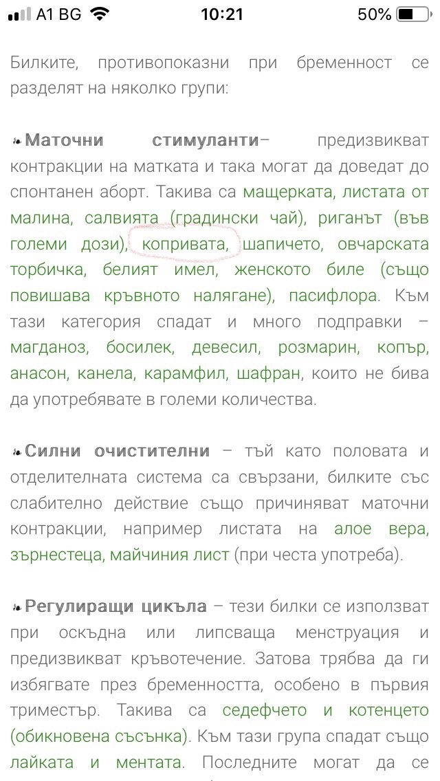 Вчера търсих какви билки са разрешени по време на бременност и на няколко места пишеше, че копривата е неподходяща при бременност. Което доста ме учуди...