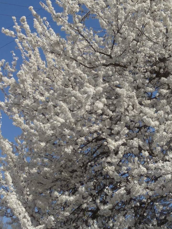 Тук целият двор ухае на зюмбюлчета и нарциси.Сливите и кайсиите цъфнали Всичко напъпило.Птичките пеят.Щъркелите са пристигнали,днес ги видях.