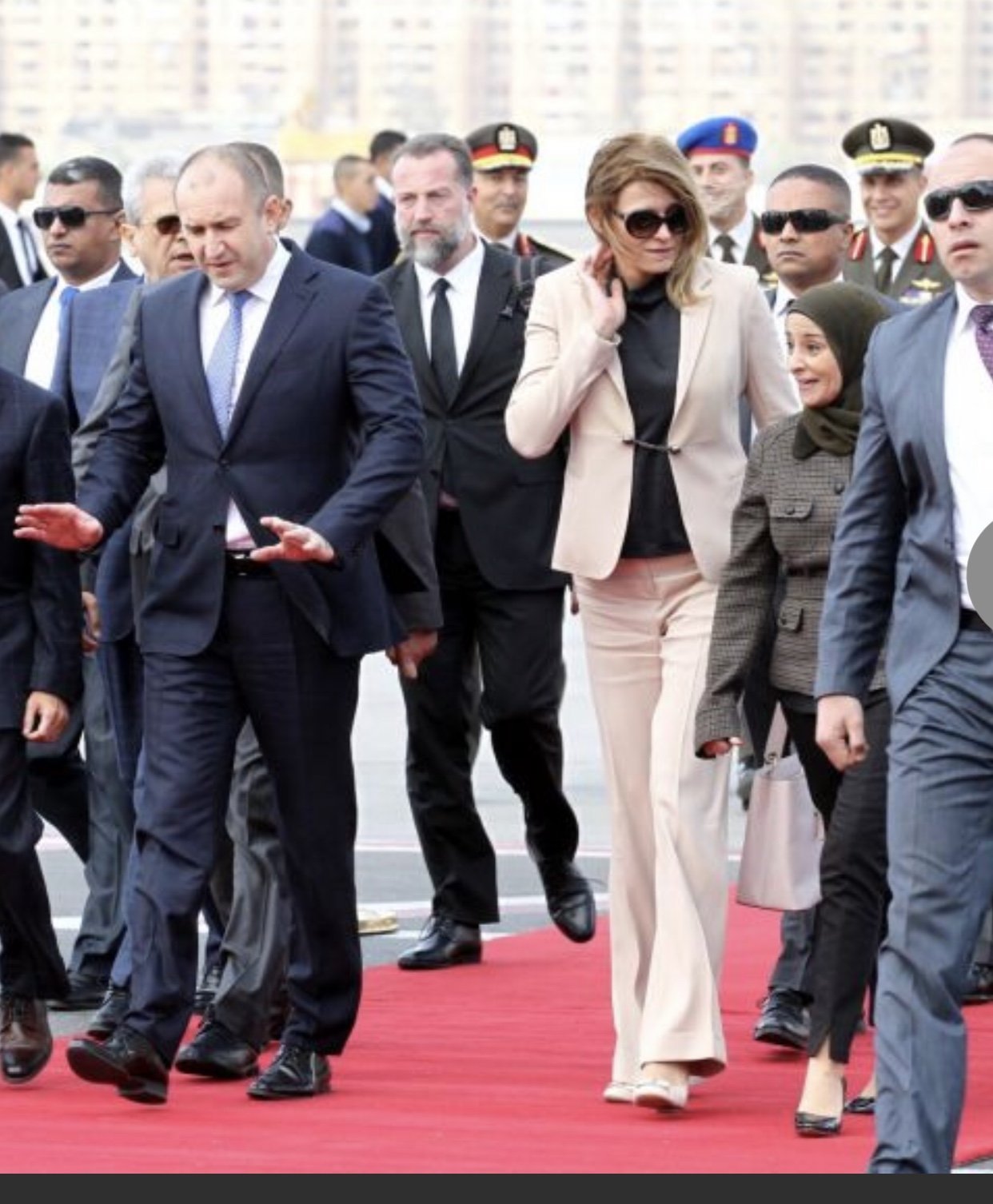 Този път тоалетът на Радева , която придружава президента в Египет ми харесва , стои и много добре костюмът и цветовете ми харесват