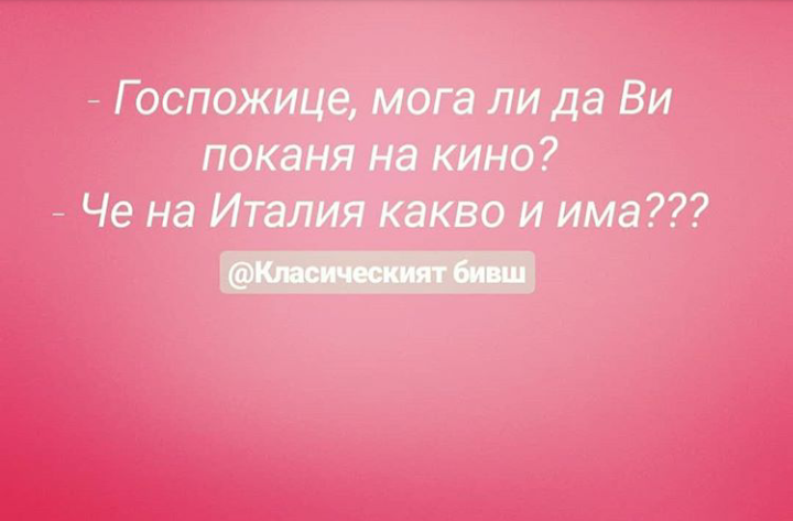 Романтика - айде че съм на работа утре; Даваш направо - шовинистко прасе.
