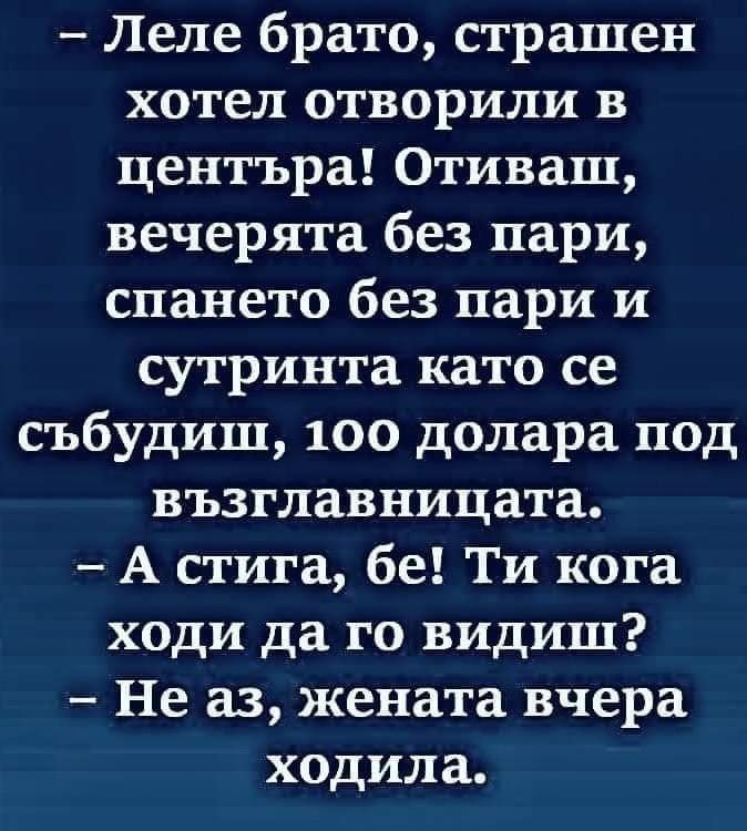 И да не е съвсем отклонение от темата - ето и едно вицче: