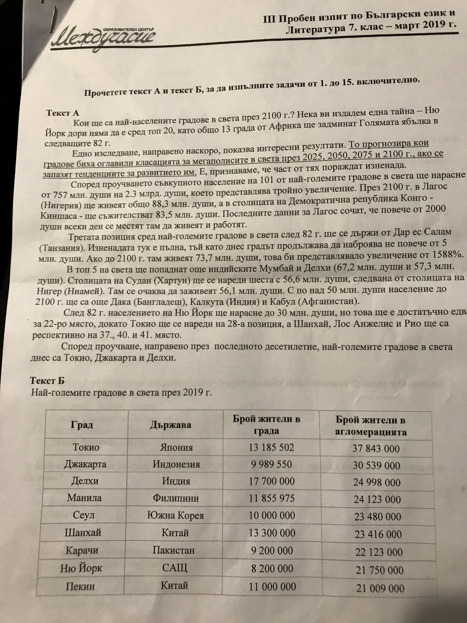 Качих в пощата пробния по БЕЛ от вчера в МГ Варна.