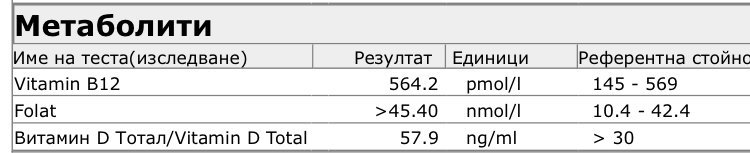Здравейте! И аз със същия въпрос. Моят б 12 е 318. Чета, че под 400 е дефицит.