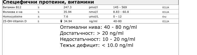 Galeona нисък е В12, не е чак драстично положението, но има дефицит и ще трябва по-сериозен прием от обикновени мултивитамини където дозите са смешни. Вит. Д също ти е нисък Peace Хомоцистеина за мен е добре  Thinking