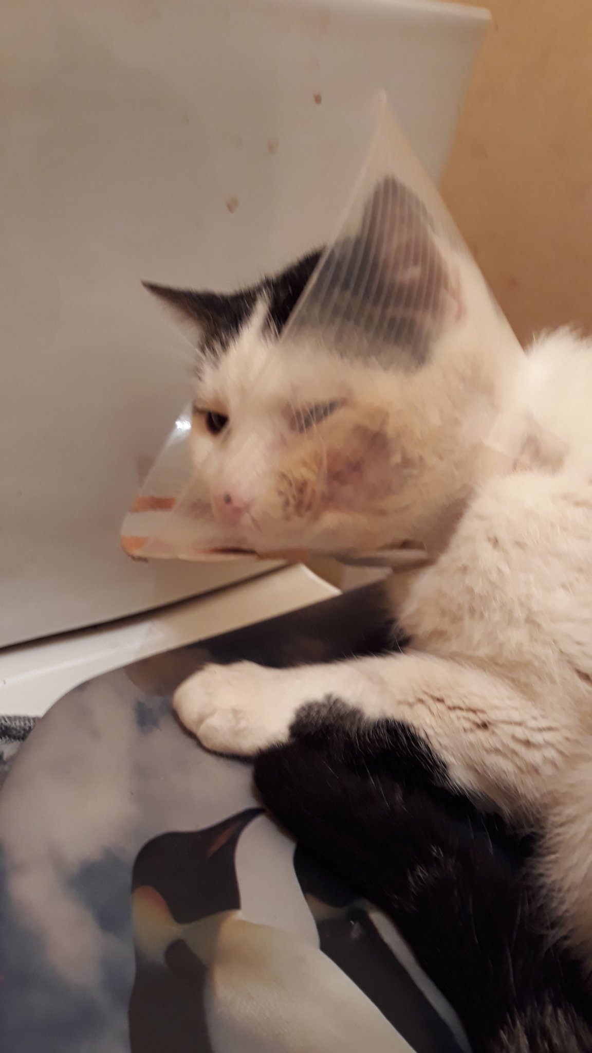 Вкъщи сме, всичко е минало нормално, котката е малко неадекватна, преплита си краката като върви. Казаха само вода, пи и даже пишка, храна утре сутринта чак, но малко, да не товарим стомахчето. Котарака е доста гальовен откакто го взехме само се гуши и радва, ще се смеете, но мисля, че то е помислило, че за пореден път ще бъде изоставено.... Отивам да го гушкам.