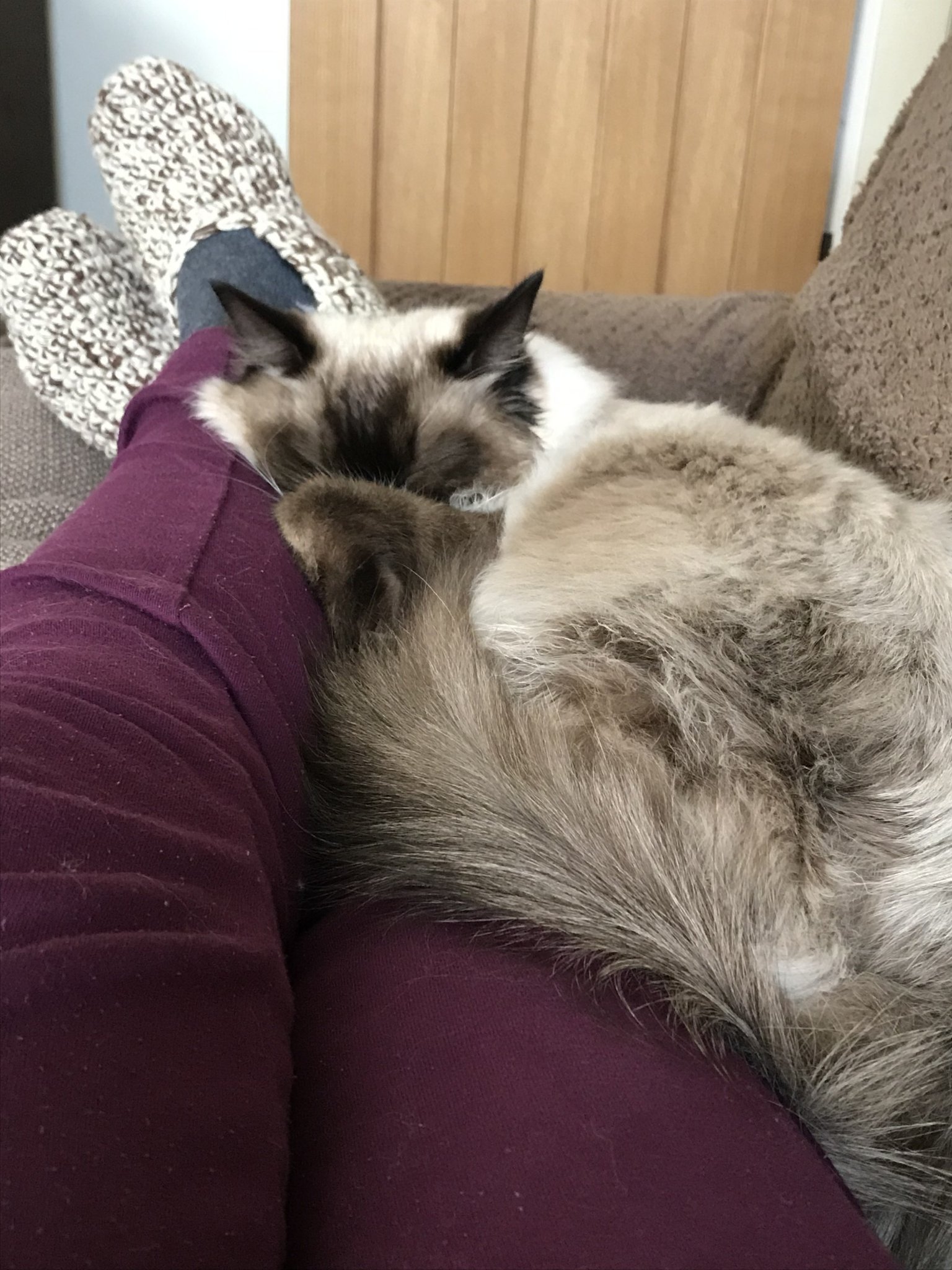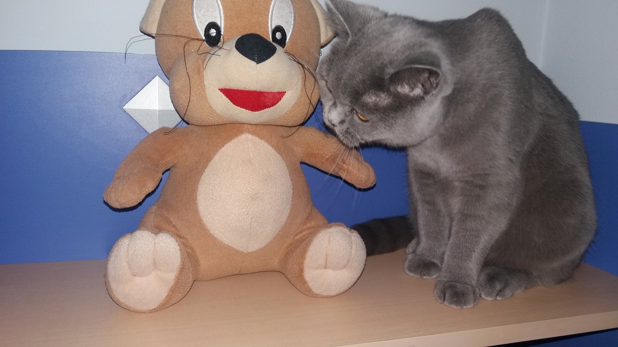), който по принцип беше доста ... хм, да го нарека груб (на моменти направо агресивен) към нас, големите хора, но с малкото човече беше съвсем различен. Първоначално много се стресна от появата на бебето, но в последствие забелязахме, че пази детето. Ако бебето плаче, а ние не чуем, идваше и с мяукане ни повеждаше в посока детската стая, за да видим бебето. Ако пък сменяме памперса на бебето и то ревне в знак на протест (98% от случаите), котьо започваше да скача по краката ни, да ни хапе и т.н, абе направо си ни наказваше, че тормозим бебка.