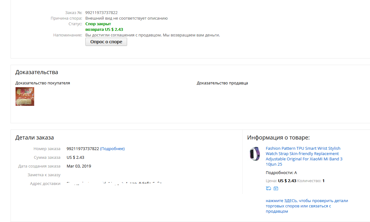 Хм... не съм сигурна. Комуникация с продавача нямам. Само пише, че "Вы достигли соглашения с продавцом. Мы возвращаем вам деньги." Как да разбера кой е решил спора - Али или продавачът