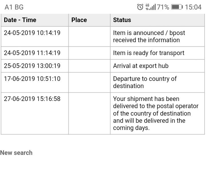 Моите 3 от 4 пратки са вече тук. Последната изтича на 2 Юли. По съвет от тук им писах да проследят пратката но получих следния отговор: