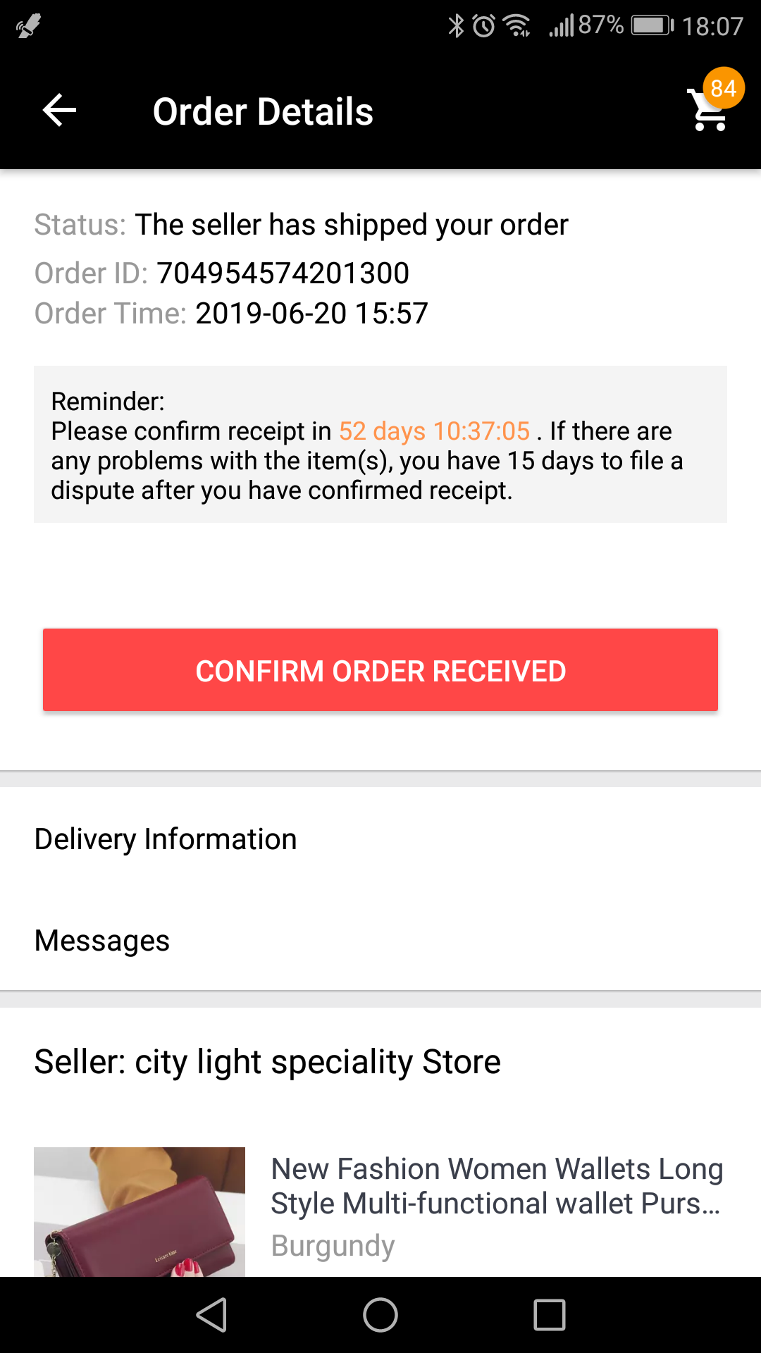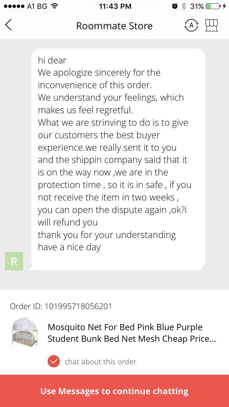Пак съм аз с моята драма. Трябваше да потвърдя че съм получила пратката до вчера. Тя не дойде и отворих диспут. Продавача изведнъж стана приказлив и ми прати две различни съобщения, едното в чата, другото много трудно го намирам, но първоначално го видях в новата опция за messages.