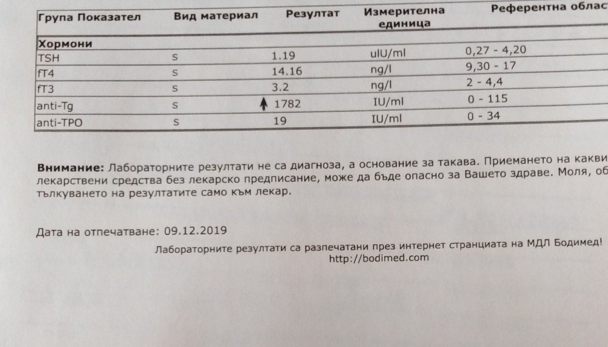 DanielaDobrewa за щитовидната жлеза не е важен тсх, това е хормон на хипофизата. Да гледа се и неговото ниво, но заедно с Т4 и Т3. Т4 е хормона който жлезата произвежда, после Т4 се превръща в Т3 който вече тялото ползва. Та така...вижда се първо нивото на Т4 т.е. колко хормон е способна жлезата да произведе. Вашето ТСХ говори за хиперфункция тоест повишено производство на хормон, но нямате Т4 да се види така ли е, защото ТСХ се влияе и от други неща и това му ниско ниво може да няма нищо общо с ЩЖ. Така, като се види колко хормон се произвежда от жлезата, после се вижда Т3 колко е. Защото има вариант да се произвежда достатъчно Т4, но после тялото да не успява да го преобразува добре в Т3 и ако то е ниско има хипофункция. Вашето Т3 е много добро като ниво и не показва хиперфункция, но както казах хубаво е да има и Т4 за да е пълна картинката.