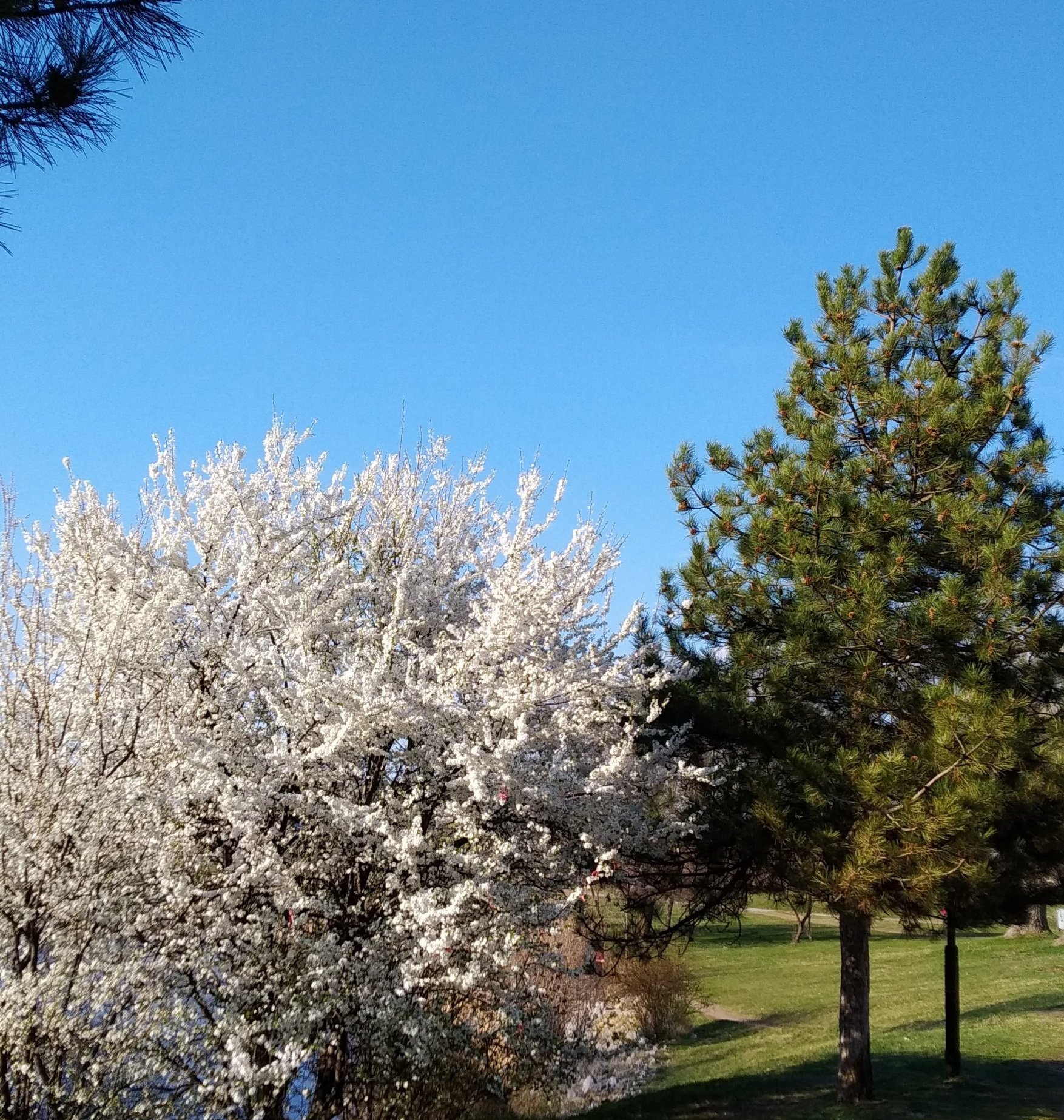 Много ми допадна контрастът между пролетта и вечно зелените иглички на иглолистното дърво.