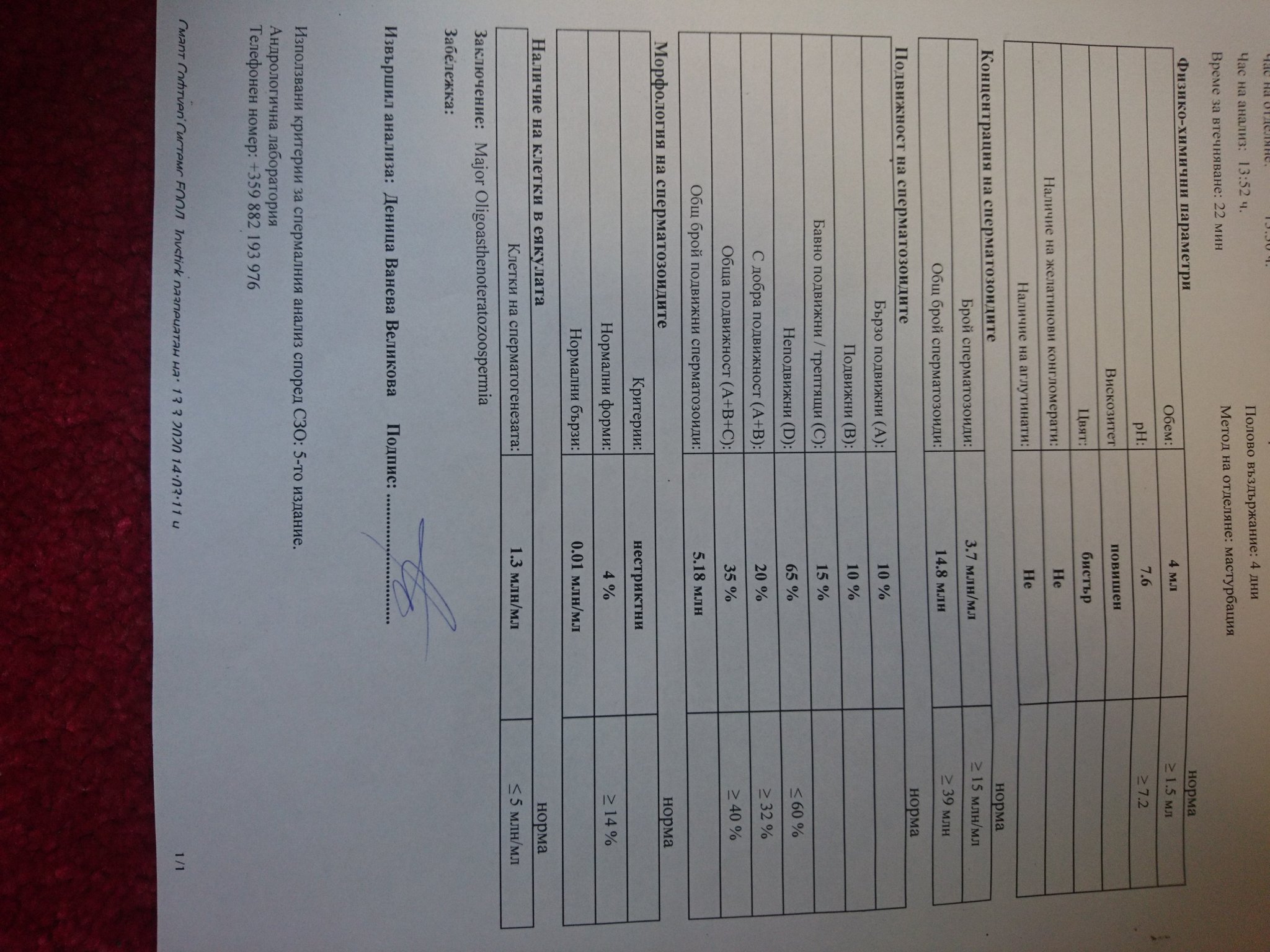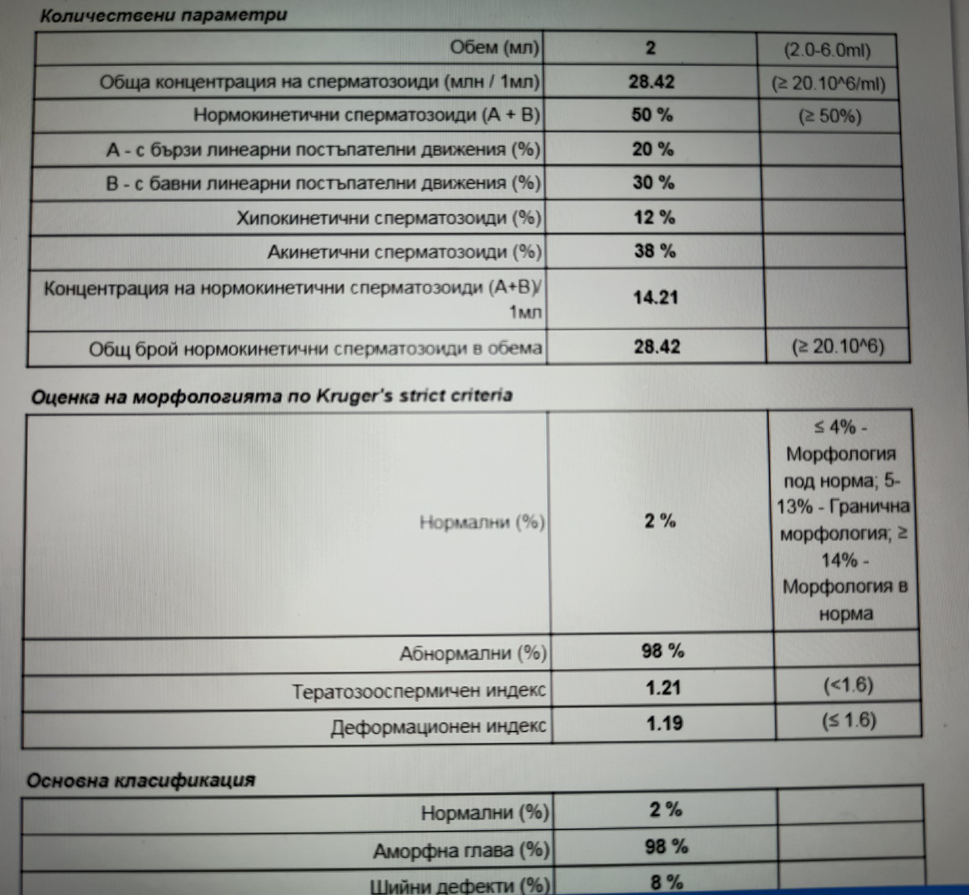 Здравейте!Да ви кажа и спермограмата на моя мъж от днес Sad