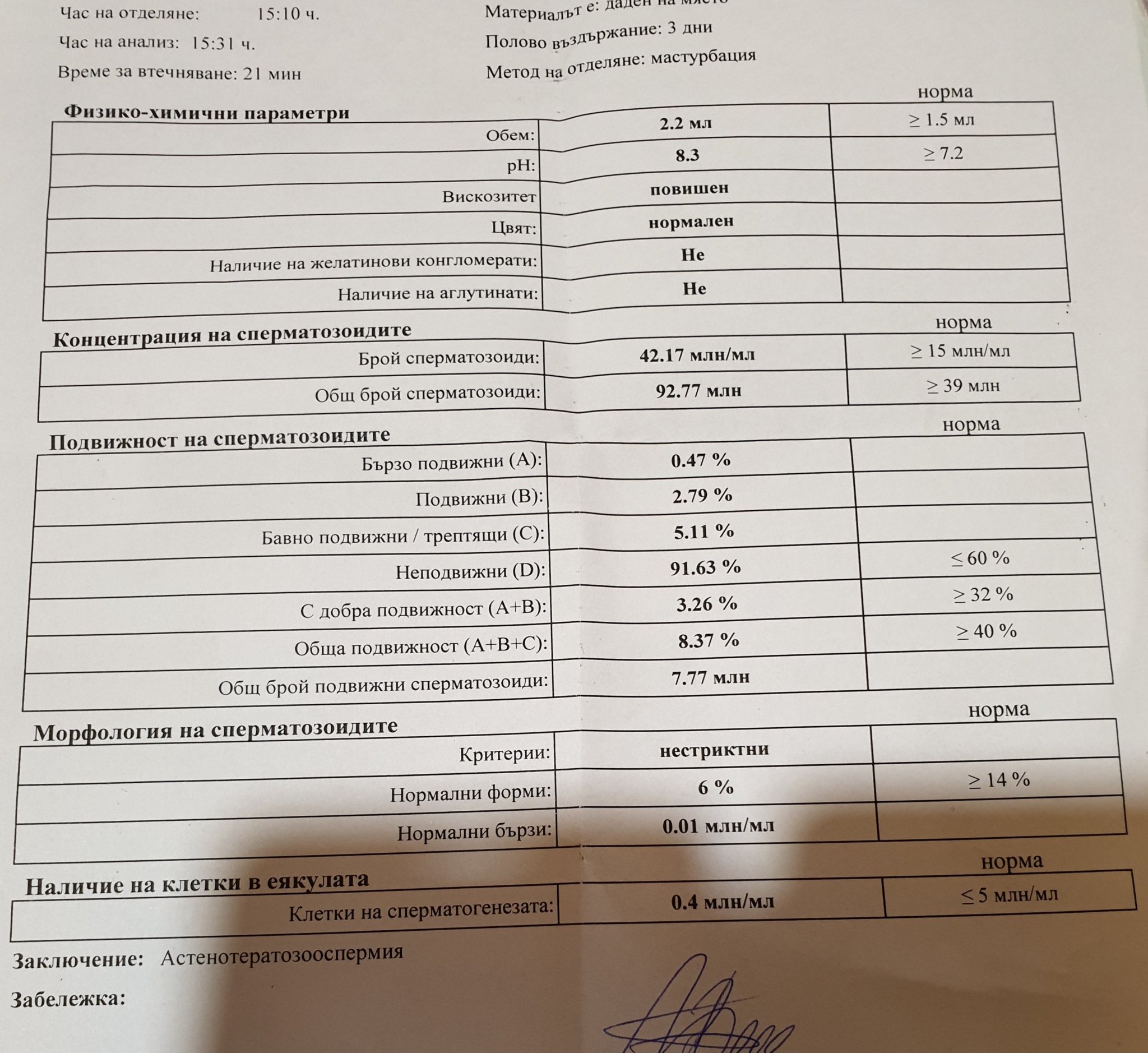 Някой може ли да ми каже нещо относно нашата спермограма?