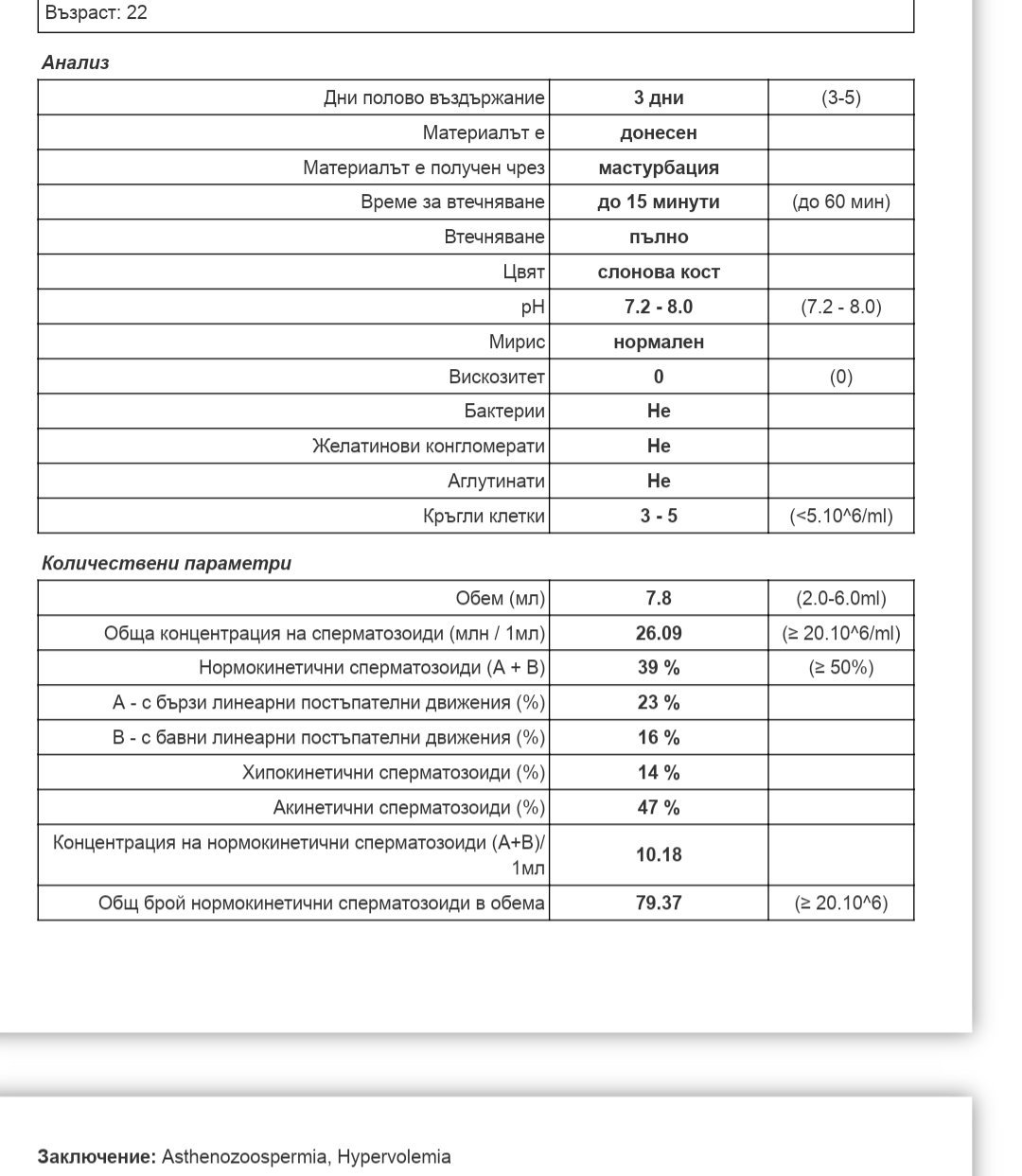 Здравейте!Да ви кажа и спермограмата на моя мъж от днес Sad