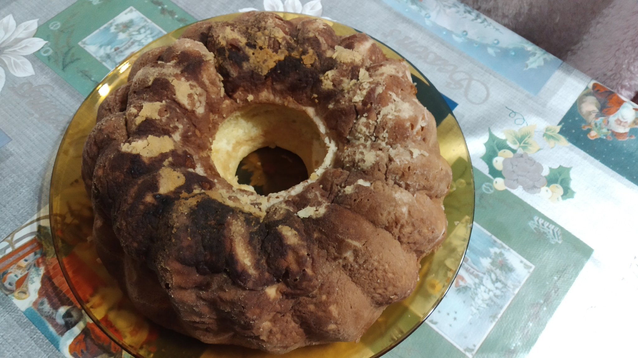 В същата намаслена форма се слага нарязан сух хляб на кубчета-до половината да я запълни на височина горе долу.Разбъркват се 4 яйца,половин кофичка кисело мляко с шупнала сода,половин чашка газирана вода или спрайт,етър, фанта(ако искате да е сладко-солена може и захар),сол и натрошено сирене/извара.Заливат се кубчетата хляб,слагат се парченца масло и се пече до зачервяване.