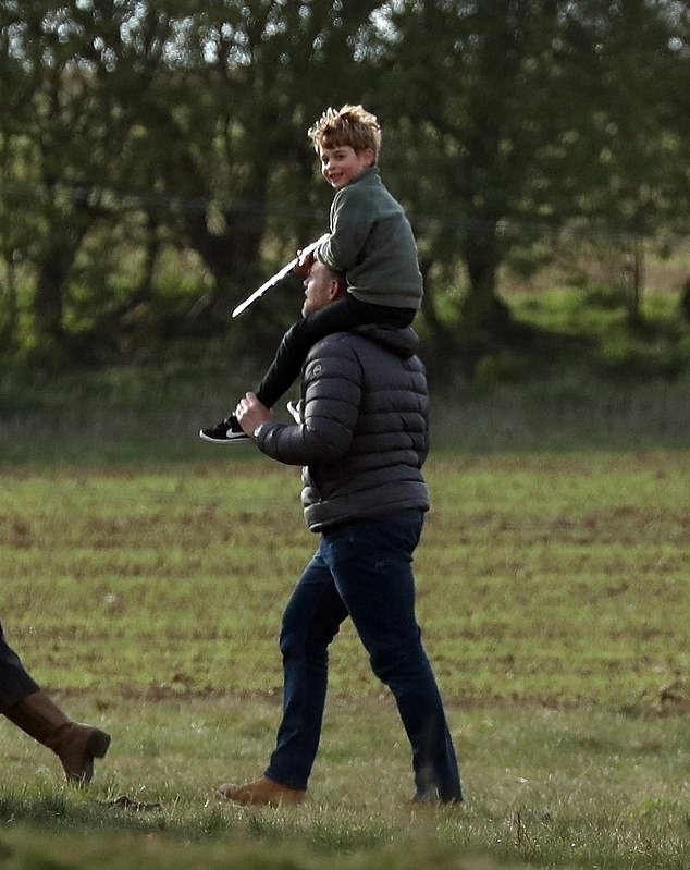 Майк Тиндал, мъжът на Зара и бащата на Миа, която е на раменете на Уилям.