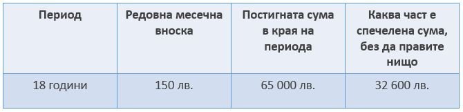 Сумите са изчислени при прогноза за спестовен план, базиран на взаимен фонд с инвестиция в акции (7%).