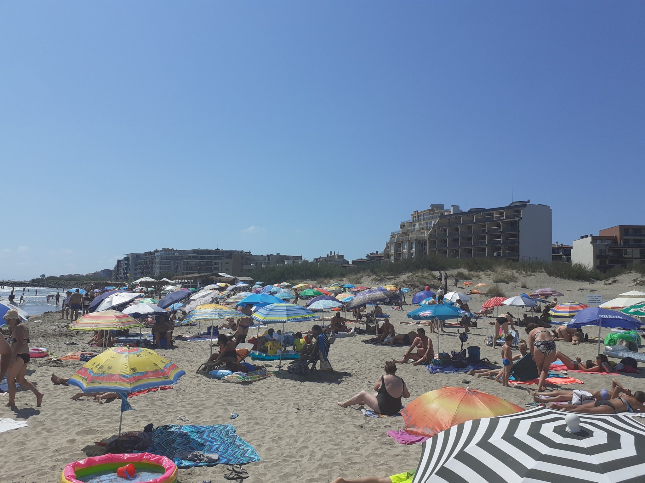 Бурно море, което изхвърля пясък на големи вълни още от сутринта, претъпкана свободна зона и липса на собободни шезлонги.