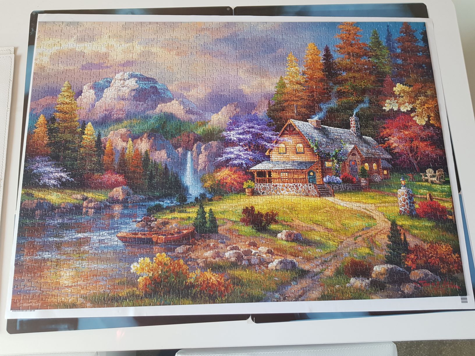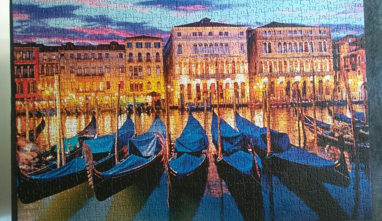 Този е на Кьонигспъзел пак 1000 части. Цветовете са по-наситени на живо. Очарована съм от марката. Засега ми е фаворит, от всички, които съм редила досега. Така са изрязани частите, че пасват само на определеното им място. Идеално си лягат и не са хлабави както при Хейе например. Много бързо го подредих въпреки цветовете.