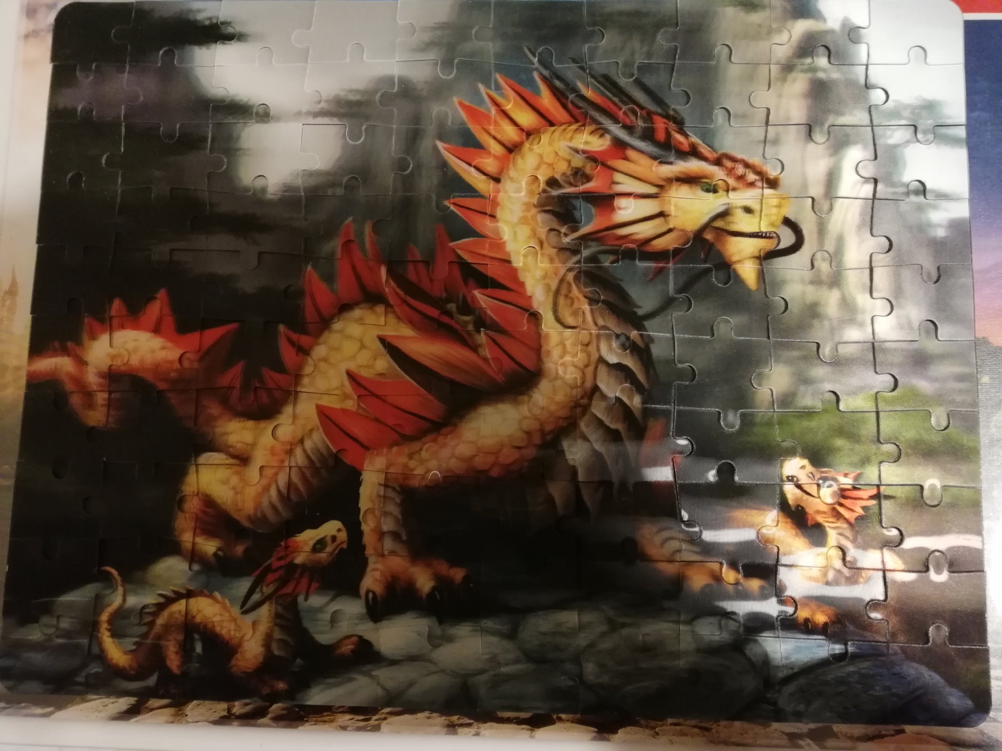 Моят последен за миналата година беше този, очаквах, че много ще ме затрудни, но беше изключително приятен! Забравих да го снимам на обичайното му място и така върху останалата купчина наредени пъзели не може да изпъкне красотата му, но все пак да го покажа нареден, макар и с лоша снимка, имайте предвид обаче, че на живо е почти 1:1 с кутията и снимките в сайта..