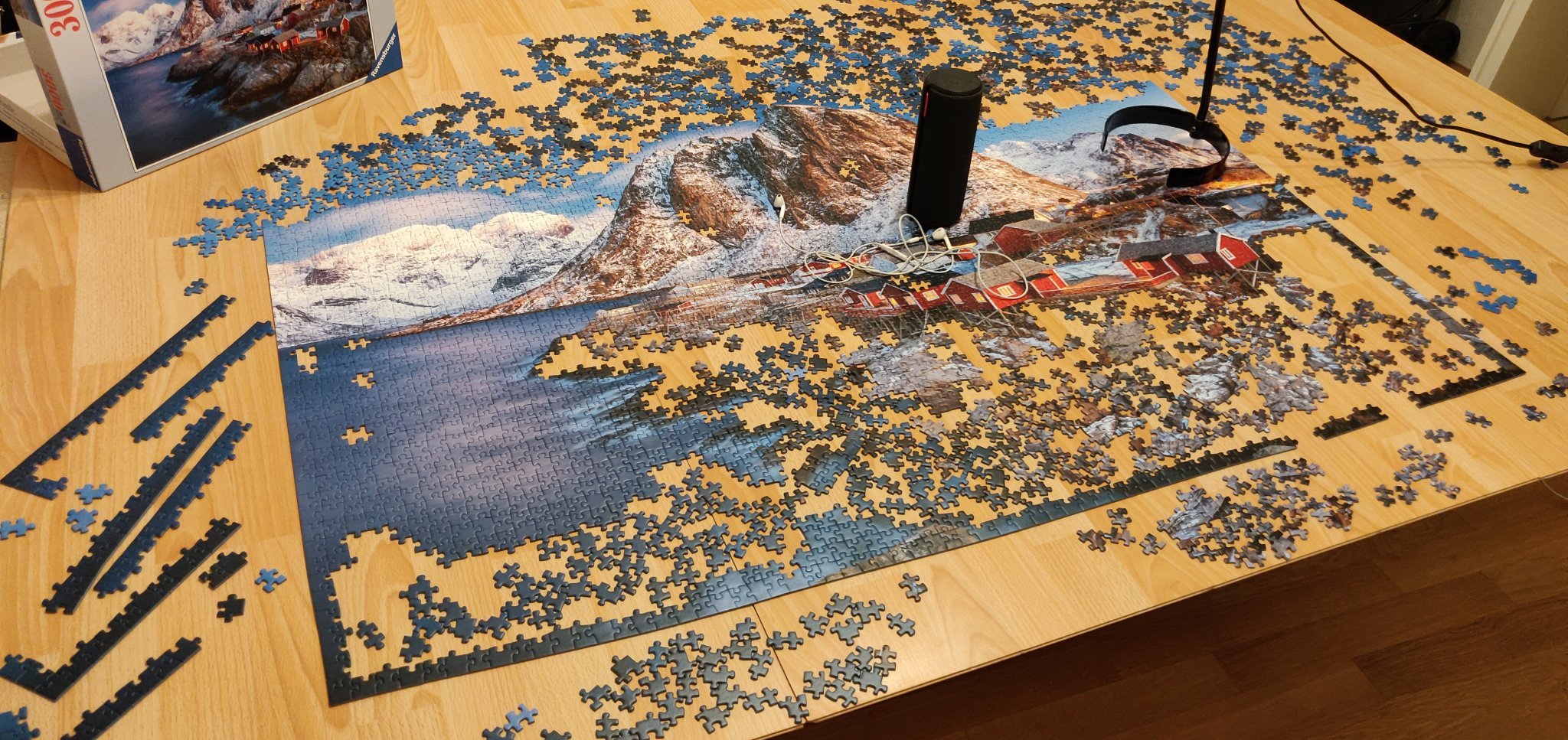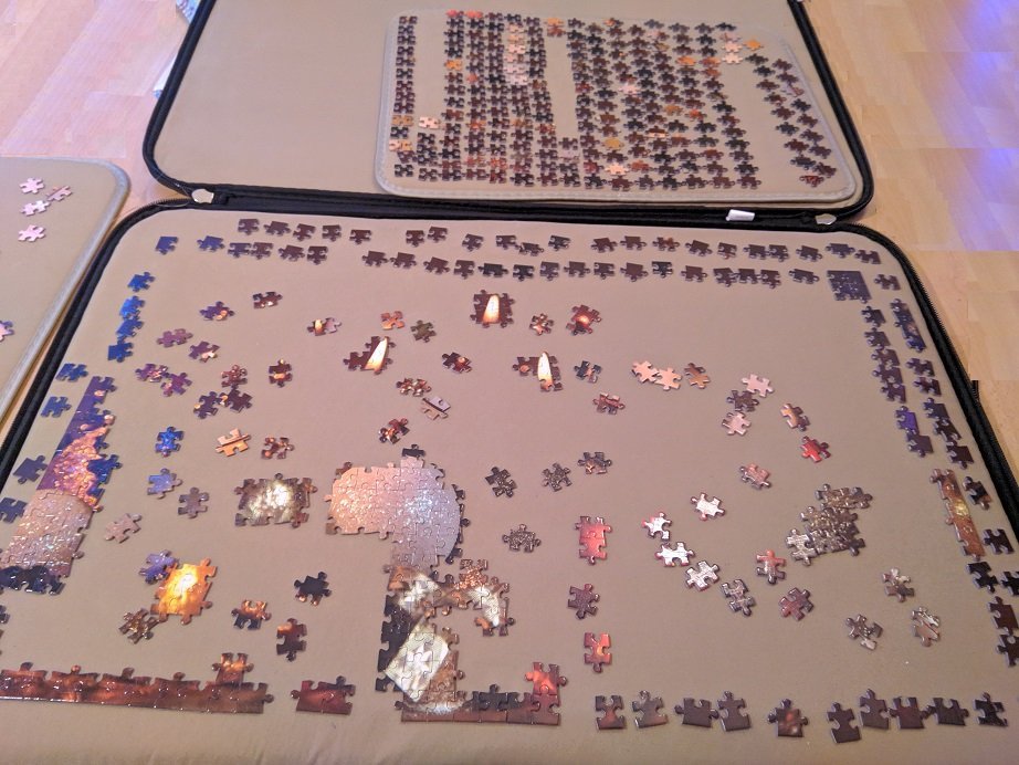 Тук ми се вижда "пъзелницата" 😃, самата тя ми е подарък за рд отпреди няколко години, защото пъзели с тези размери на маса не мога да редя. Този пъзел ще стане 120х80см, получих още един от 3000 части, а и имам и един ненареден от 5000, съотв. още по-огромен. В останалото време я прибирам и поподреждам и стаята си става стая за гости и хобита.