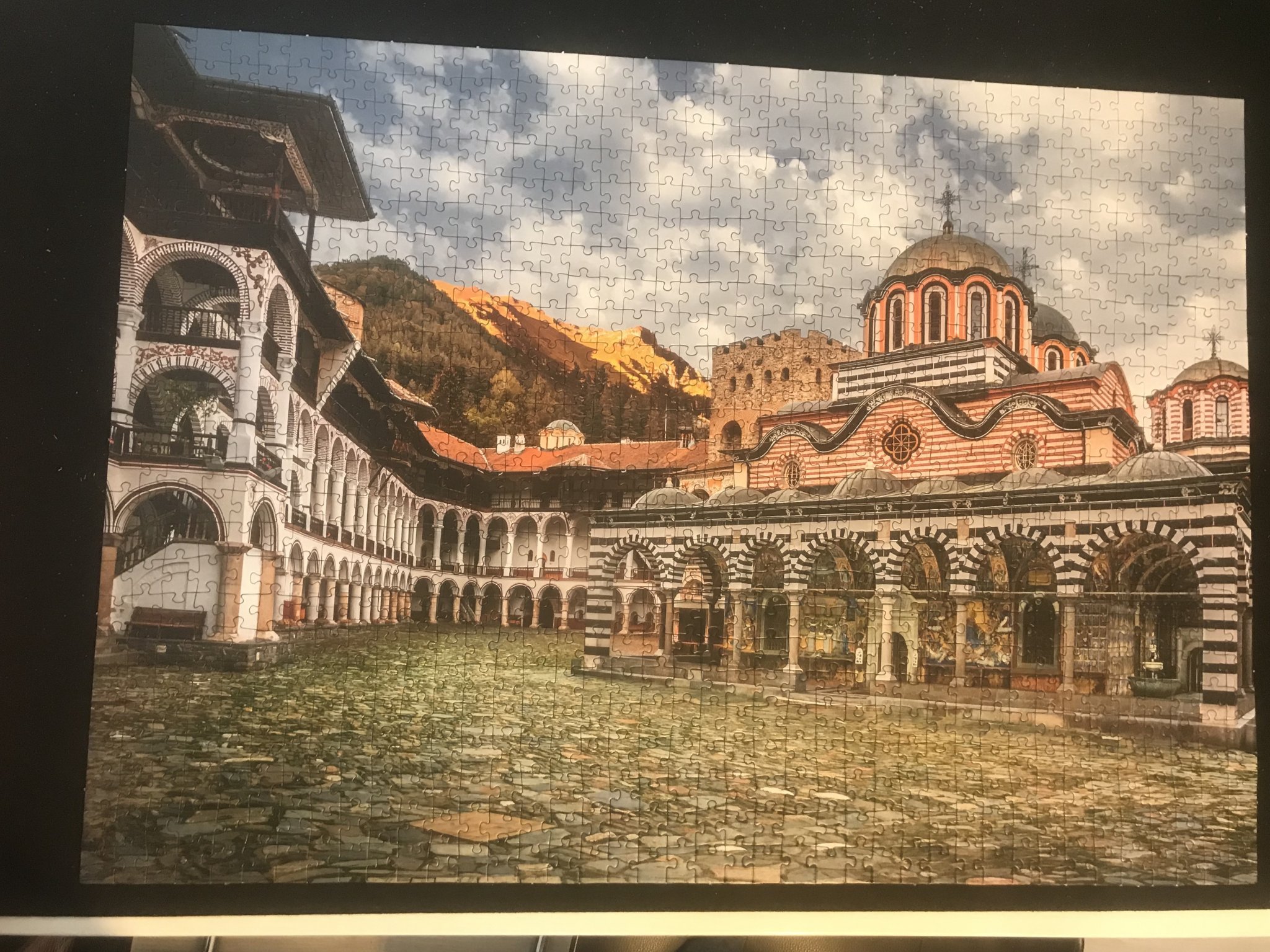 Ето един пъзел от мен от днес. 1000 части на Heye. Много приятно вървеше, като изключим небето, то доста ме затрудни. Почти цялото небе беше с еднакви по тип части- две срещу две дупки и стърчащи(не знам как да ги опиша). Та самото небе ми отне време, колкото останалата част от пъзела. Това е манастира Иван Рилски.