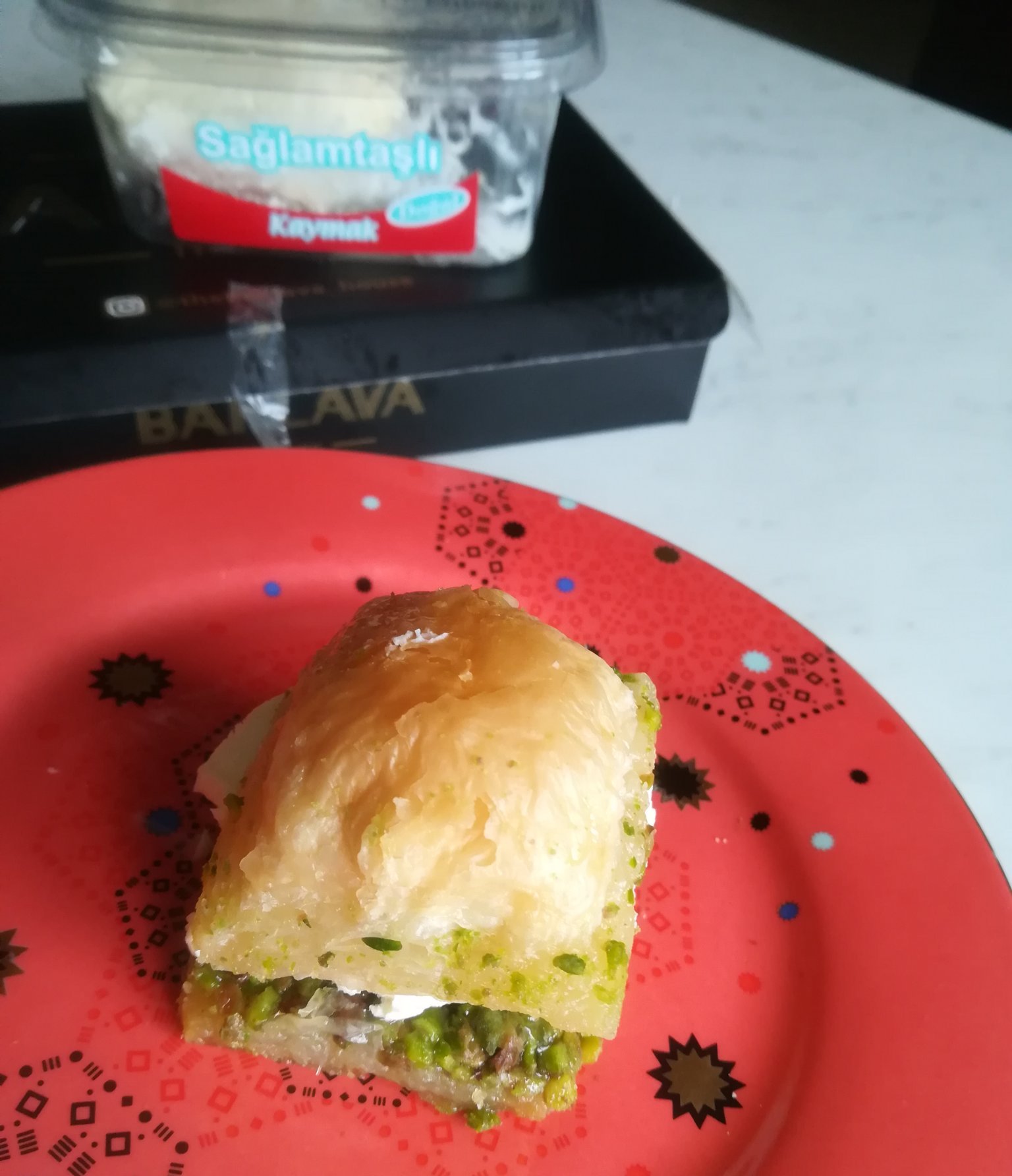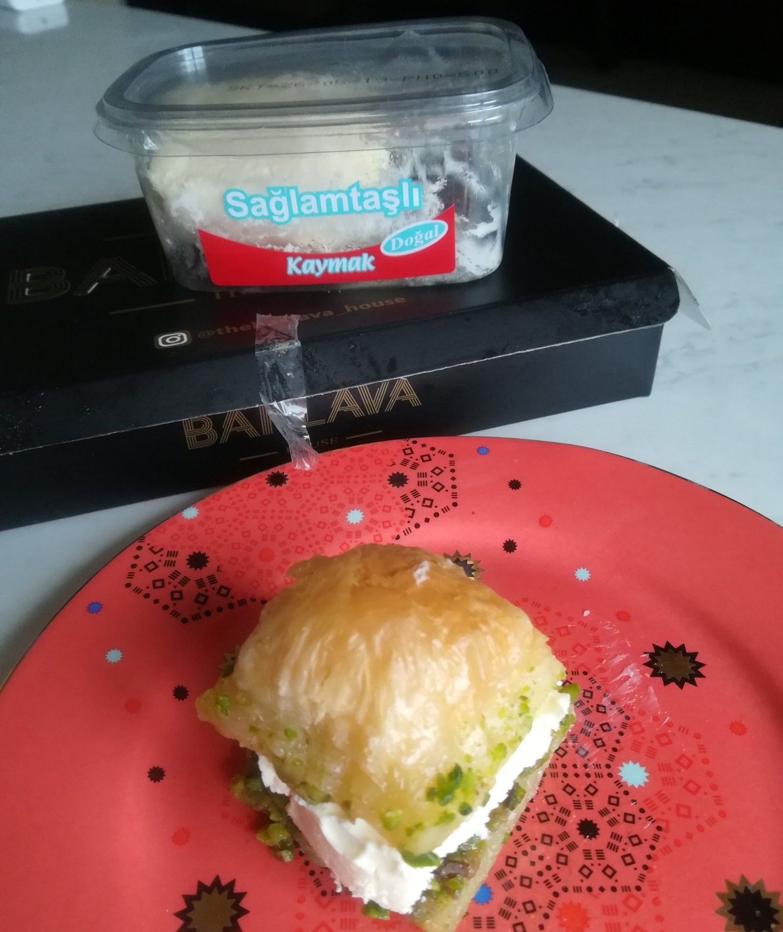 От каймака купувам от този от 12.90 лири. Бях писала няколко пъти, че каймака убива сладостта на баклавата. Затова я поднасят с баклава въпреки, че и тя както знаеш си е калорична бомба.