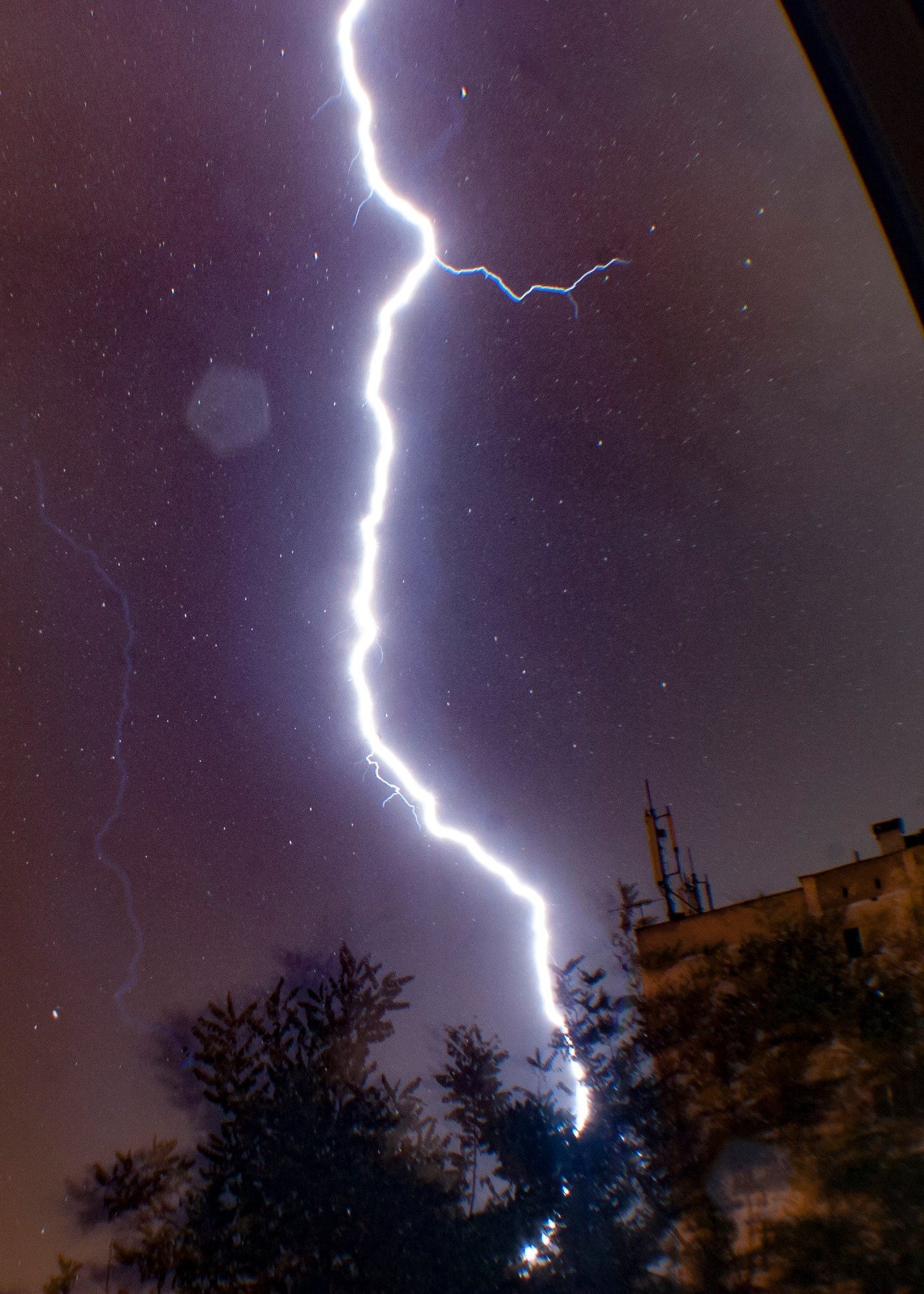 Бог Тор е маааалко сърдит... Една стара снимка отпреди 2 години, ако не се лъжа. Canon 10 D, 20 сек. скорост на затвора, самоснимачка (че тогава нямах дистанционен спусък), бленда f/14, ISO 800 и късмет. Мълнията падна зад отсрещния блок, а как останаха здрави прозорци от трясъка не знам.