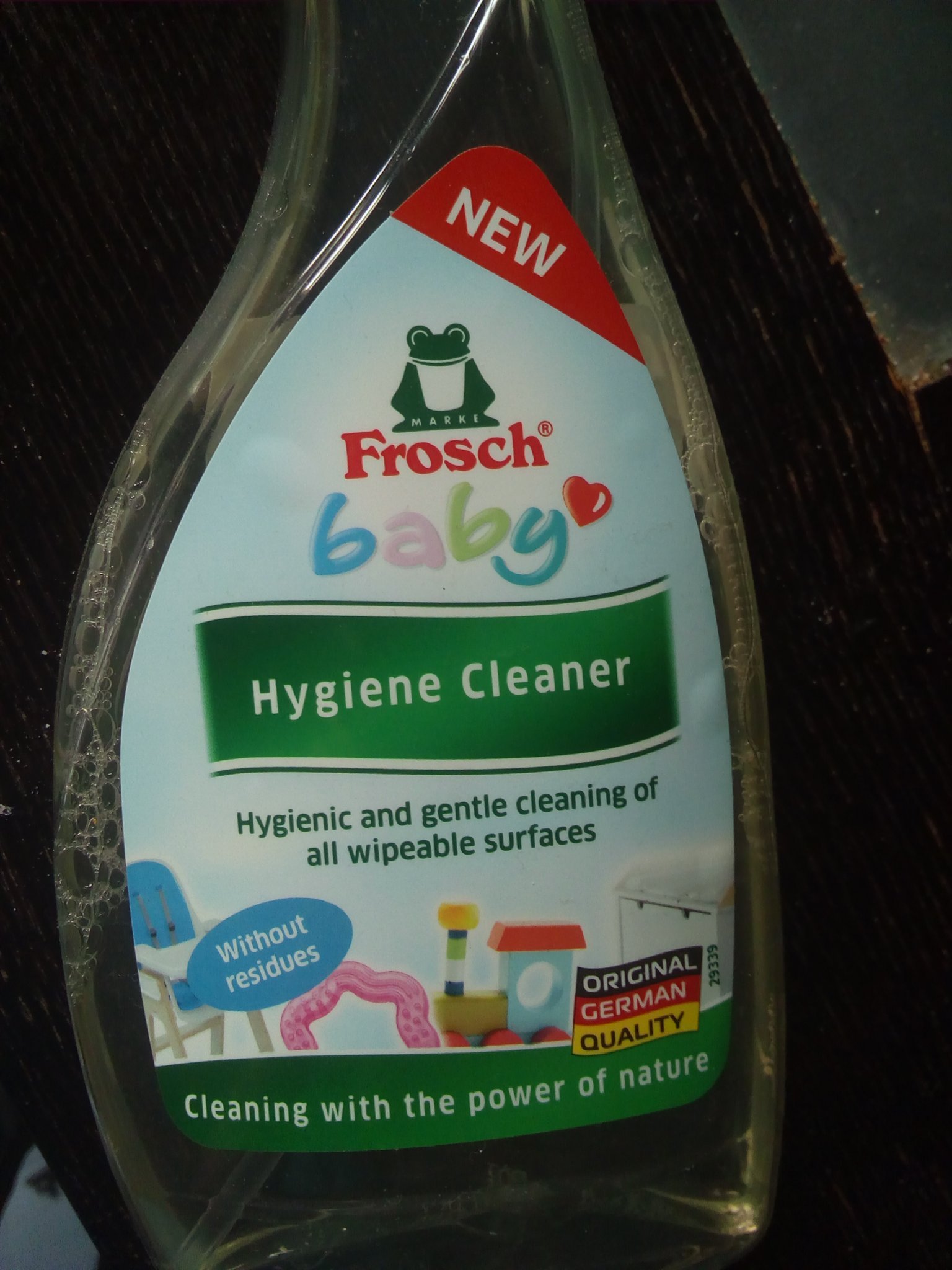 Почиствах новите неща със спирт, после препарат на Friendly или Frosch(нямат аромат и хубаво почистват), най-накрая влажна кърпа. Ваната с препарат за бебешки съдове и гореща вода.