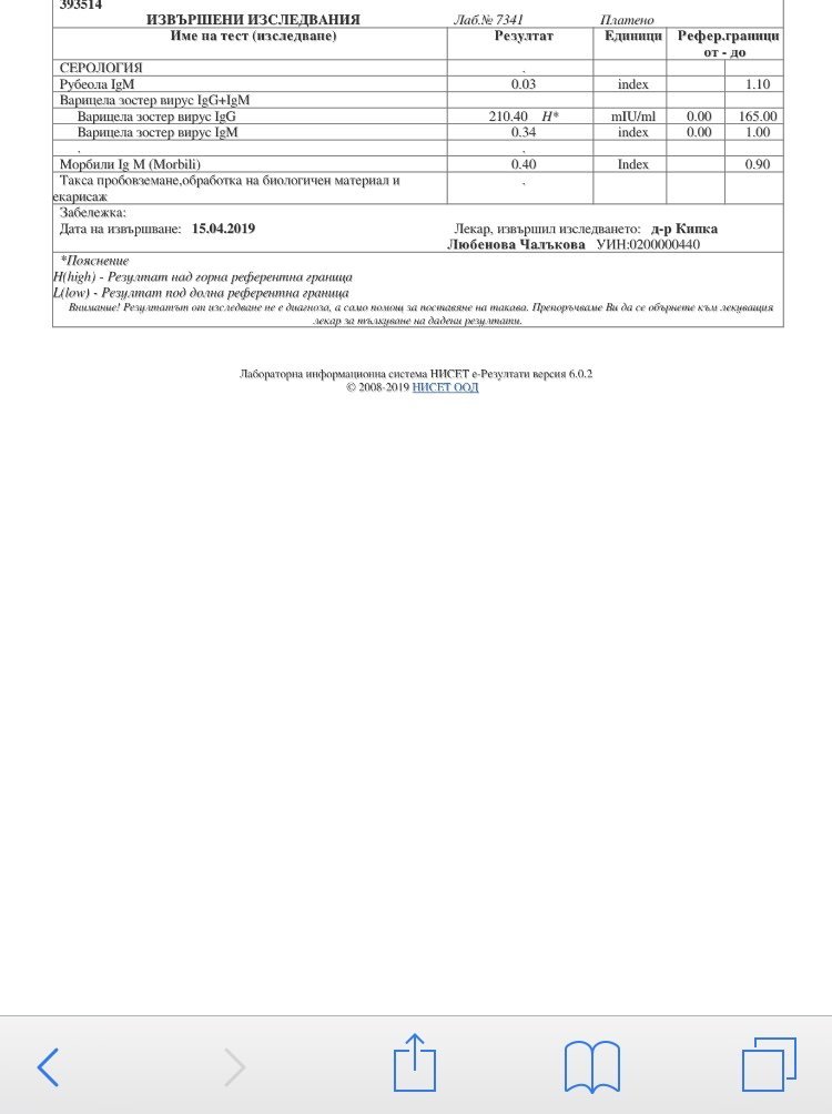 Не си болна от рубеола , варицела и морбили, и си прекарала варицела. Аз така го разбирам