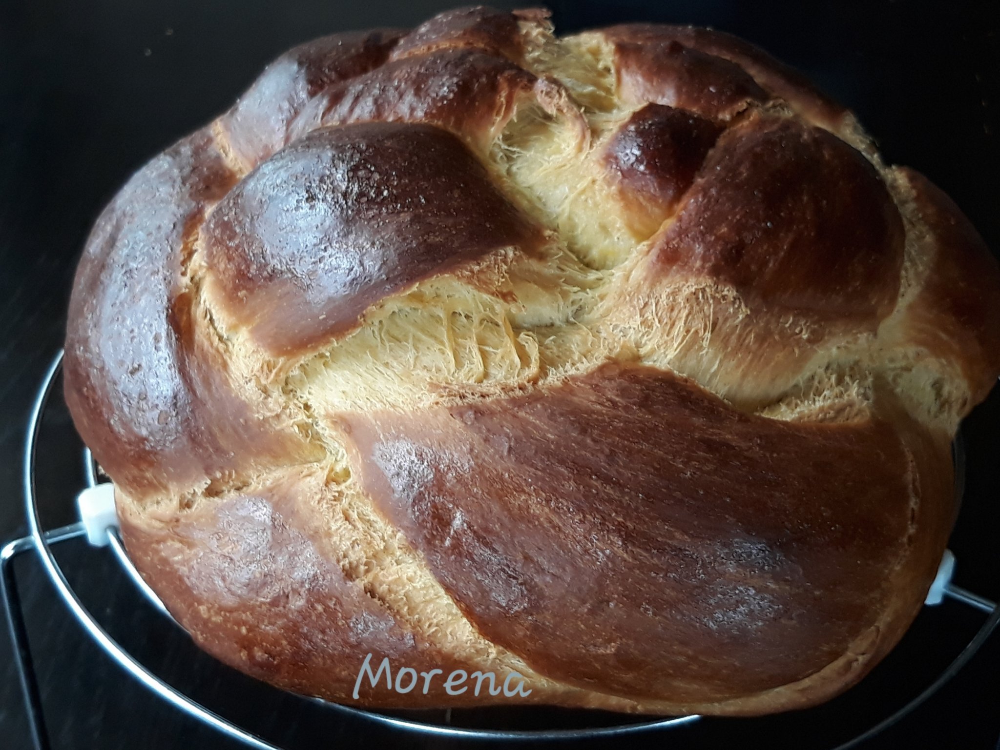 Не снимах. Единия е нарязан и изяден. Вкусен, добре опечен, но с препечени кори. Ако не бях бляла да го завия с хартия или намаля фурната щеше да е перфектният козунак. Ако ми дойде музата днес или утре може да метна още един. Месих с екстрата на София Мел. Добро е. И докато чаках да се пече си направих от онази захар за поръсване, през решетъчна лъжица.