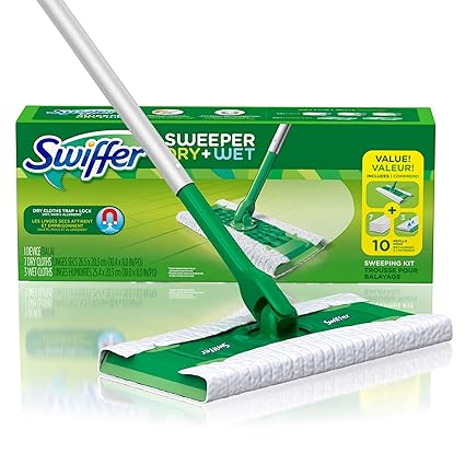 Аз чистя под секцията със спрей моп, тънак е, и успява да се навре по- навътре.