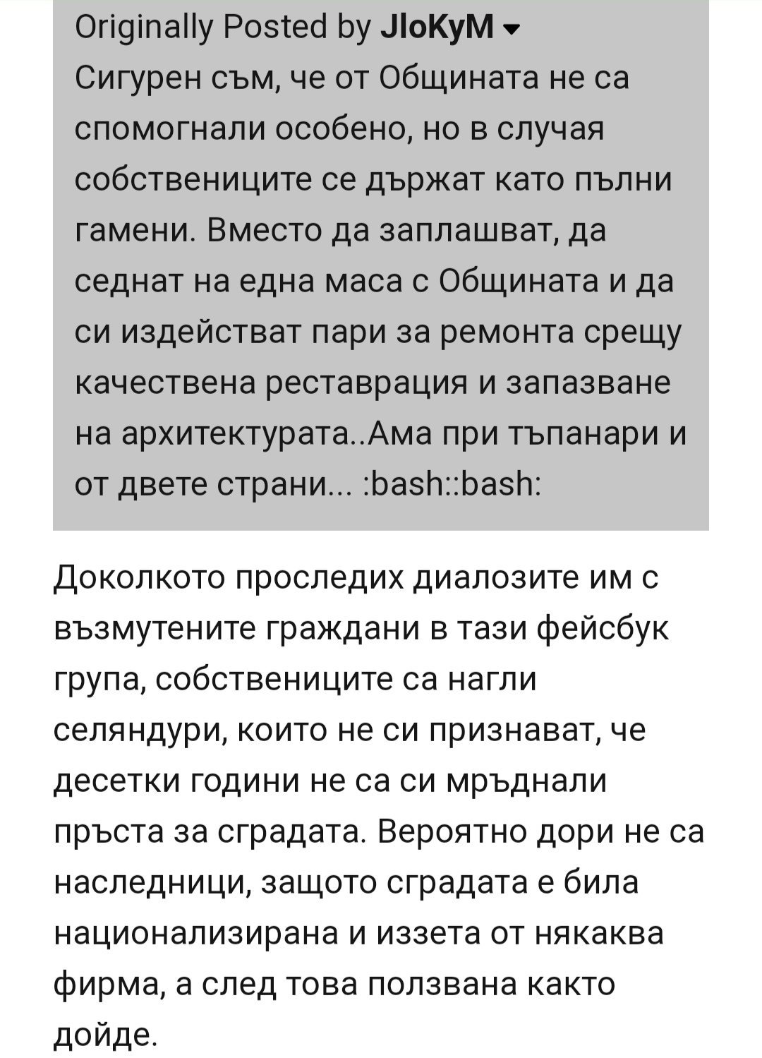 Мнение за обитателите и проблема със сградата