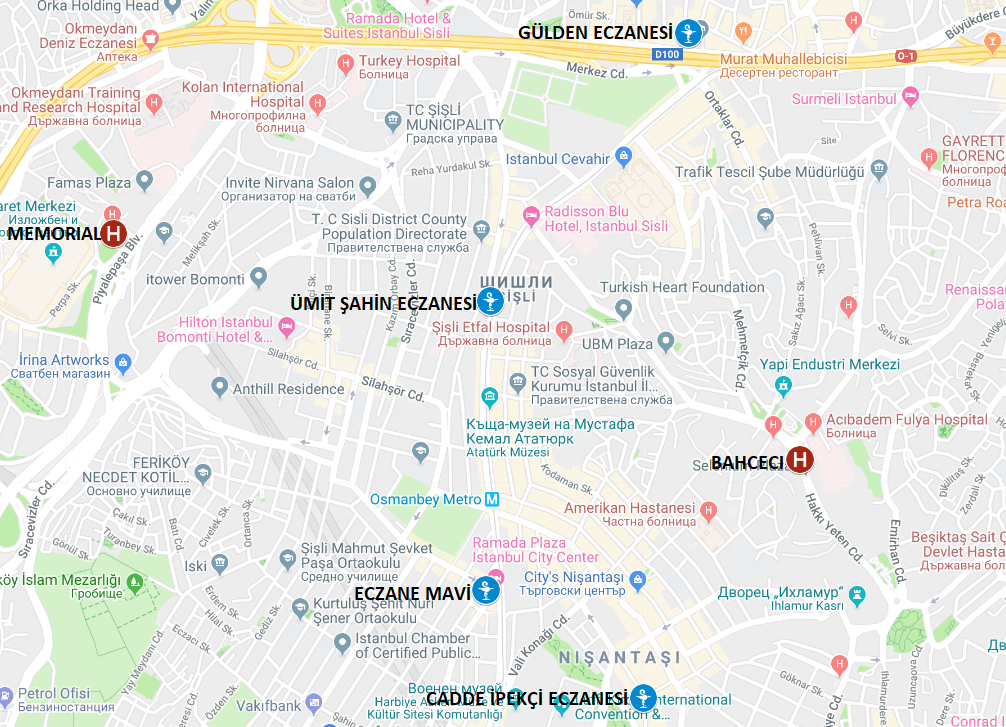 От хотела ние пътувахме с рейсовете към центъра или Шишли и бях доволна , че сме близо до Мемориал . До Шишли е удобен и пътя пеша по маршрута на рейса - покрай държавната поликлиника - за 30 -40 мин пеша по почти равен път стигахме до улицата с заведение и до Chevahir мол в Шишли . По - удобен е  от колкото по баирите през квартала и надлеза ... Използвахме за транспорт приложението Traffi , за маршрутите Maps.me - и двете работят офлайн.