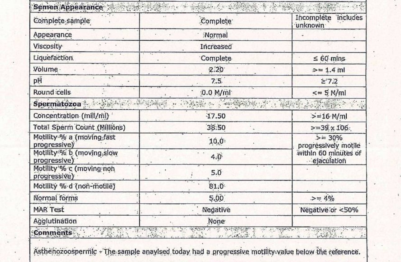 Здравейте, пиша ви да споделя как след спермограма с диагноза Астенозооспермия след 3 месеца се подобрих и резултатите ми бяха Нормозооспермия.