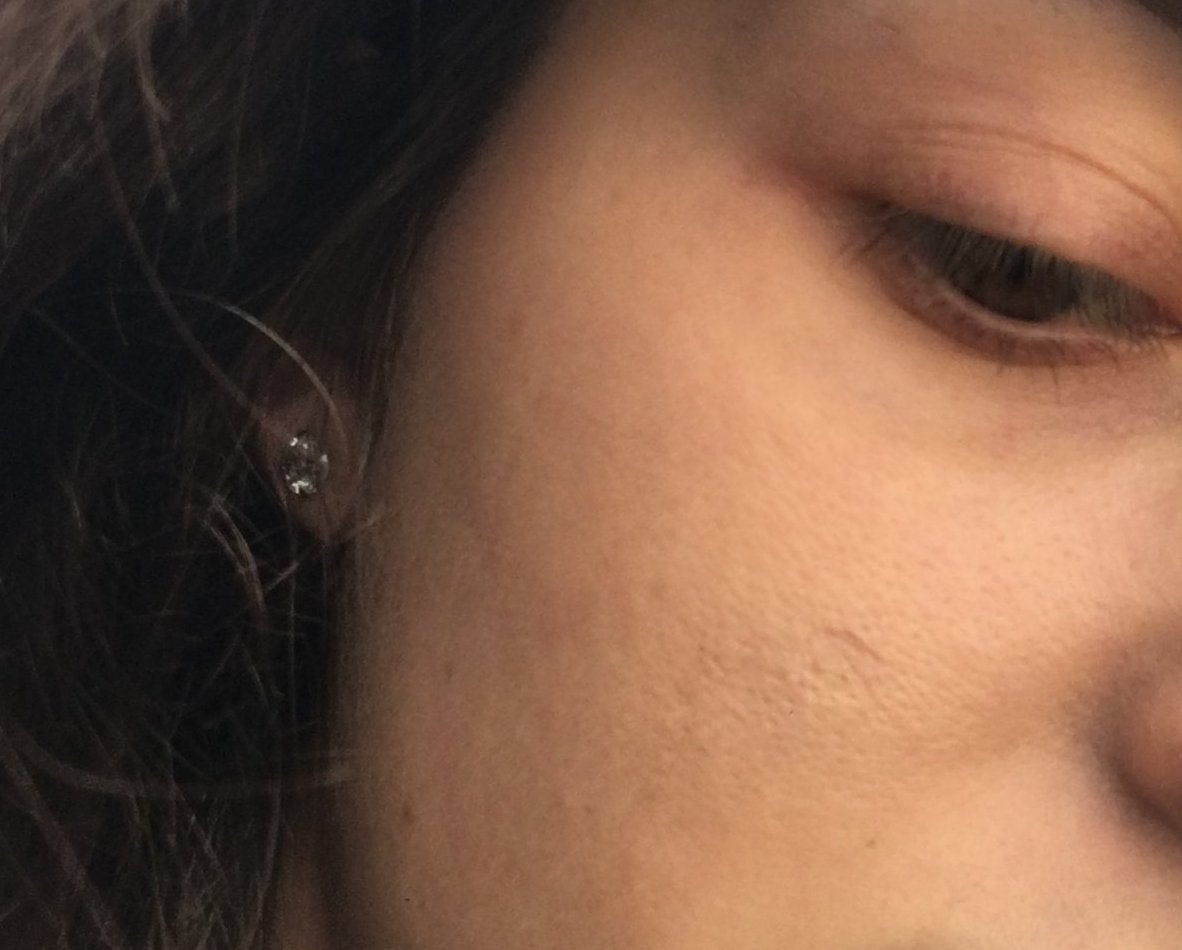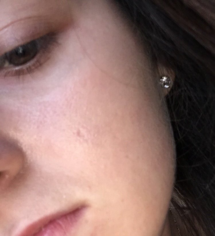 А сега там където беше раничката е вдлъбнатина,даже не ме интересува честно казано дупчицата,която беше дори да е мъничко по-дълбока. Просто се притеснявам за това около нея ...