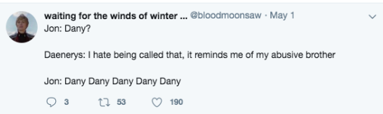 Дани в момента много трудно мога да я отлича от  Станис, който си настояваше "правото си е мое" и толкова. Сякаш сме в детската градина. Ами ако гледаме така на нещата Денерис ще каже че нейно, пък Джон, че е негово, пък андалите - че е тяхно, преди да има Тарги, а Първите хора ще твърдят е още тяхно е правото.