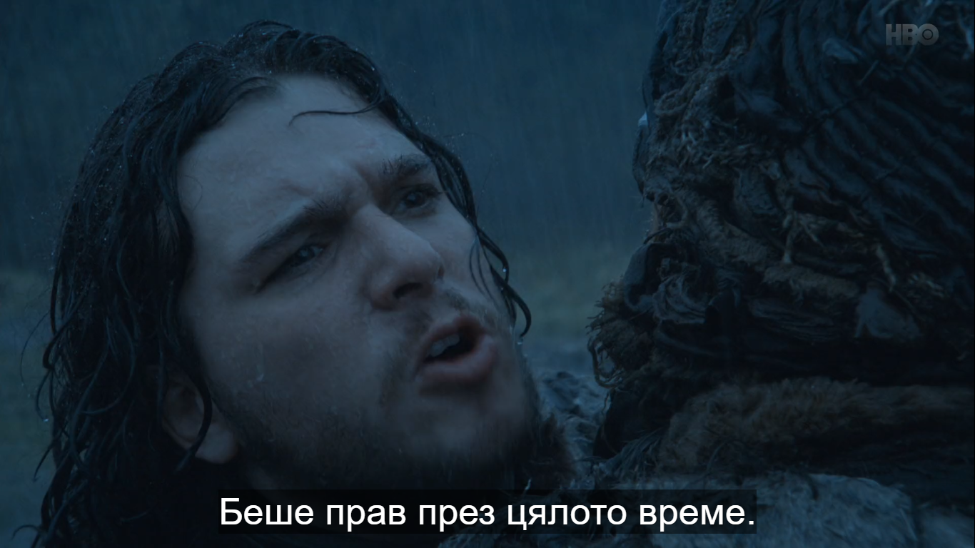 *в книгите съм привърженик на Станис и Тирион, но сериала скапаха образа и на двамата. Е, и на Джон, ама те и неговия образ скапаха в сериала.