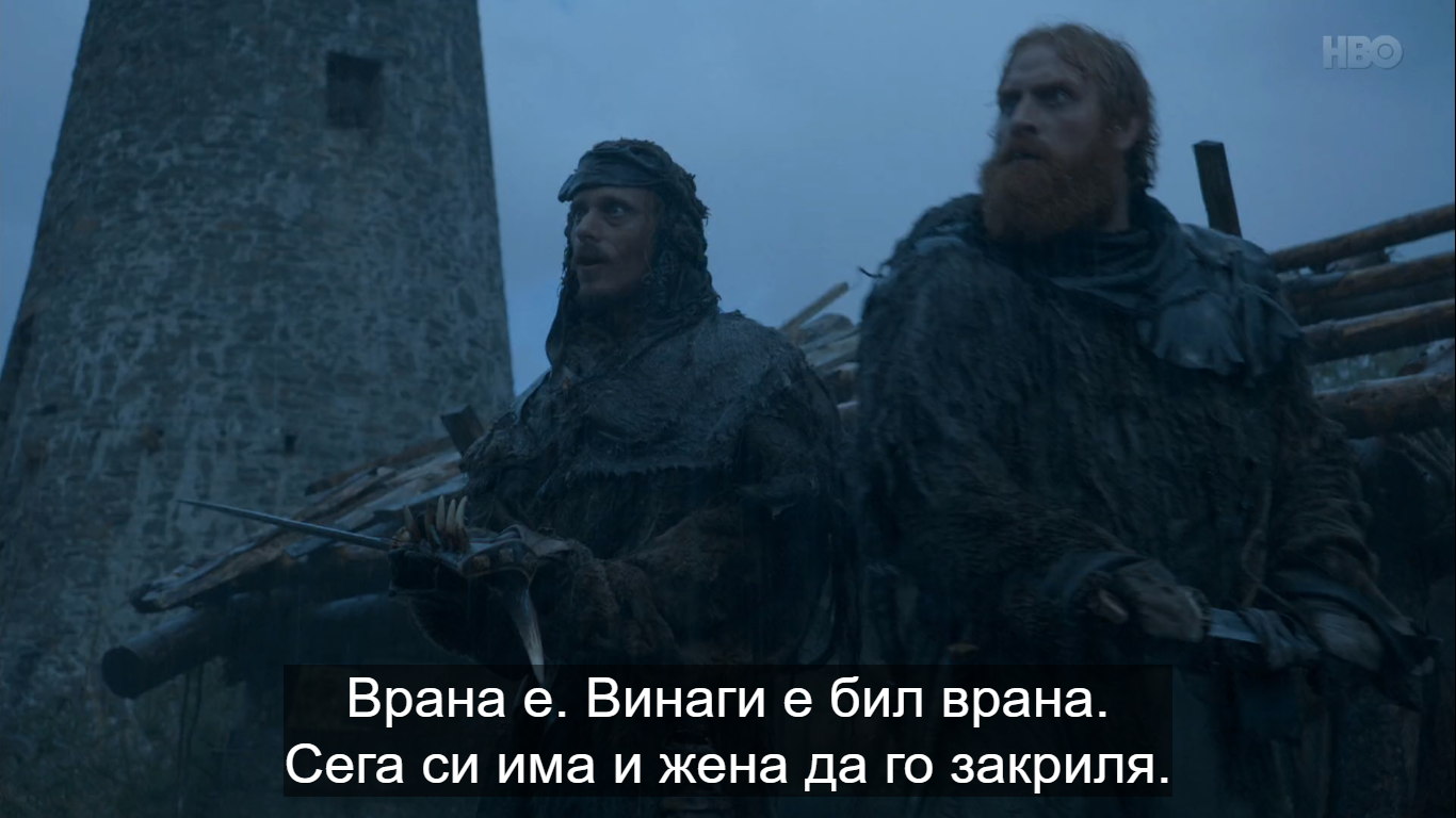 Но на мене ми се струва, че може да се отнася и за Бран. Тоя Бран винаги ми е бил много зловещ. Дори в сериала Оша се страхуваше от черната магия на триокия гарван.