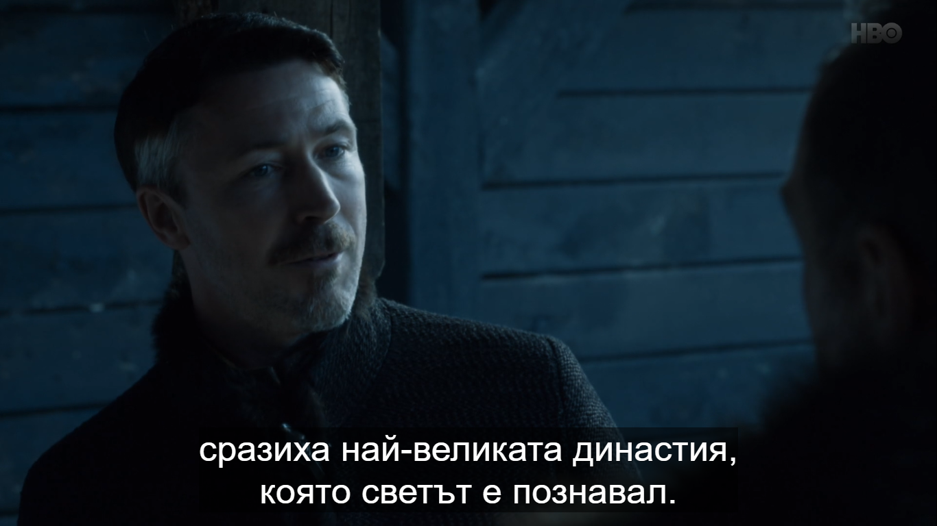Аз имам един въпрос. Робин Арин къде е в цялата картинка? Независим, към Дани, към Церси? Армиите му са на Север, ама за толкова време, нито Санса го е споменавала, нито Церсей. Може и от там да изскочи нещо.