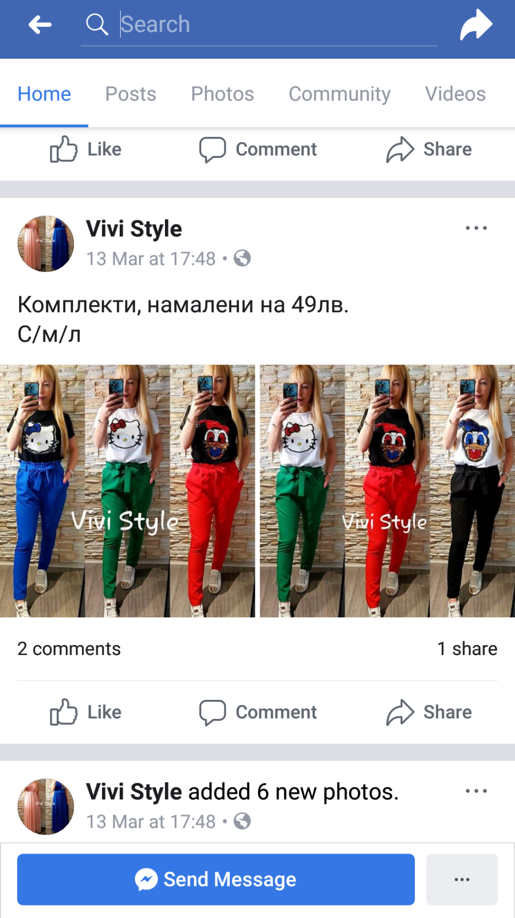 Страницата може да не съществува, но със сигурност си продава дрехите. Редовно спира пред Еконт с колата и вмъква чувалчета за изпращане. Но много лошо организирана е, сякаш не е наясно какво прави - гледа телефона, звъни, говори с някого, после с приемащия куриер, излиза до колата, вкарва, изкарва пратки... Вече се моля да не я улучвам в офиса, а на мен ми се налага често да си взимам пратки от там.