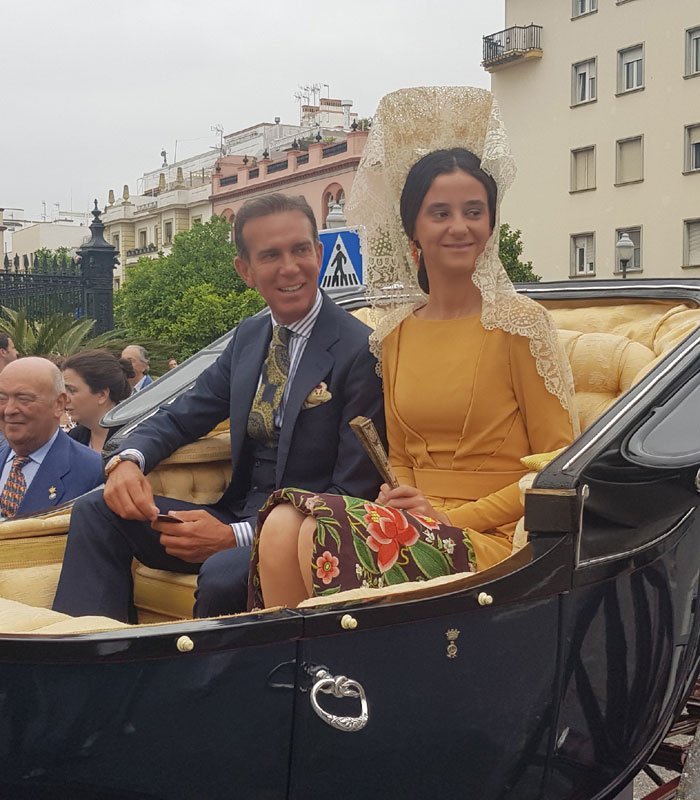 Дамата е само на 18 години. На главата си носи мантила - традиционен испански аксесоар.