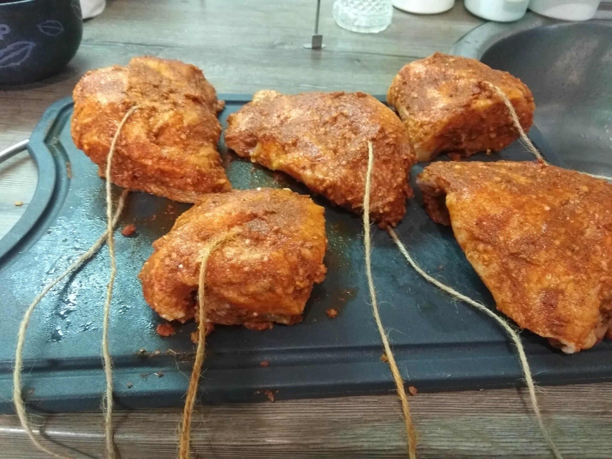 Сега кайзеровах бузите, довечера - пастърмата. След седмица ще са готови.