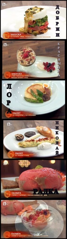 Закуската на Краси ми допадна най-много, на Николай също ми се видя най-подгодяща. Яд ме е за Добрин и Краси.. 😟