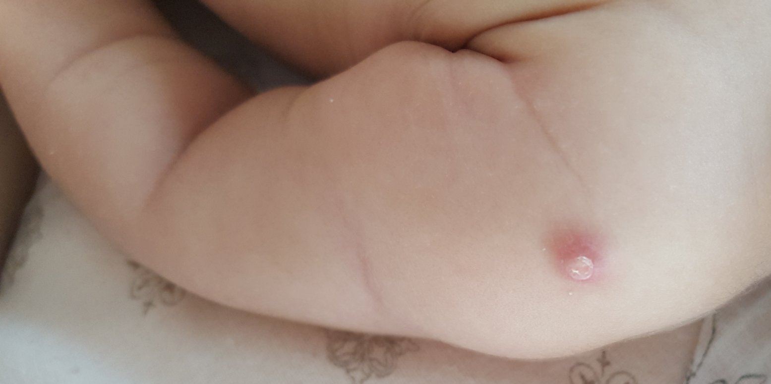 Да. Нормално е. Само суха стерилна марличка може да сложите, ако се спука да не цапа дрешката:)