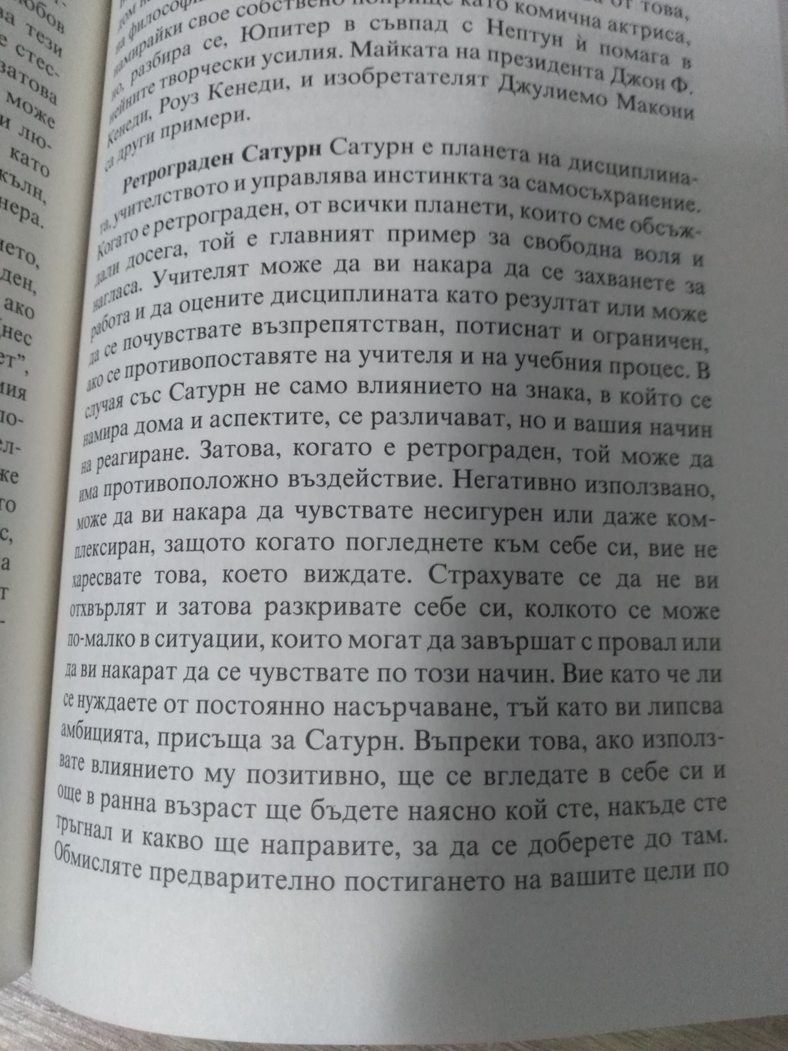 Ето извадка от описанието на ретрограден Сатурн: