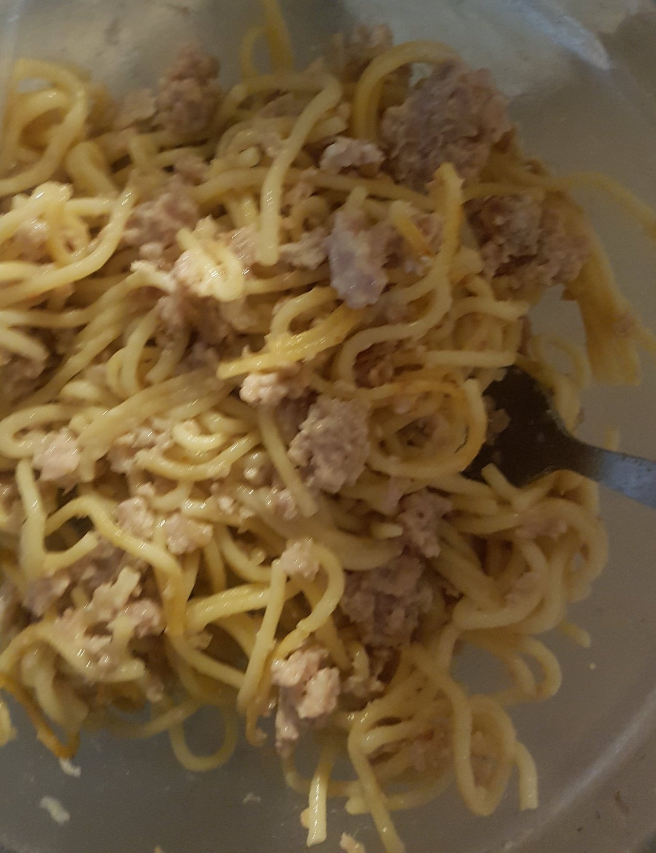 Малко пр.мляко, щипка брашно, кайма, спагети