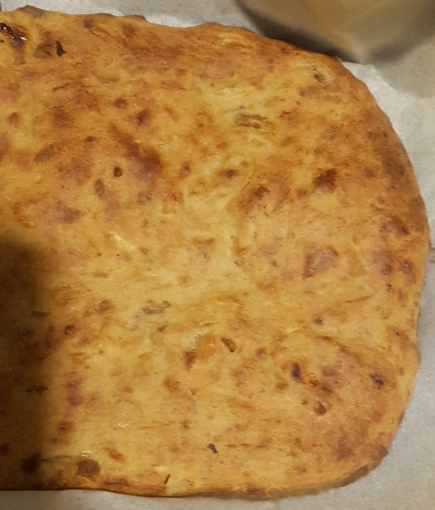 Пр.мляко, брашно от лимец и бяло брашно. Стана фантазия, мм изяде 1/2 още преди да го обърна.